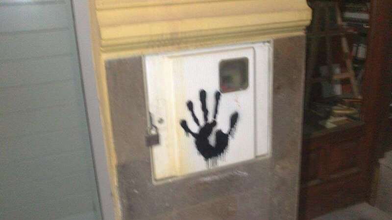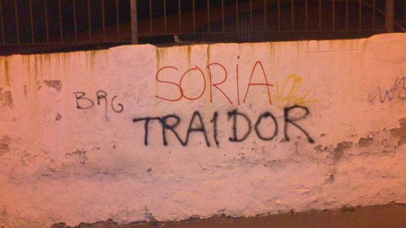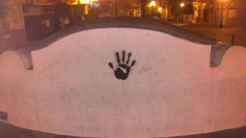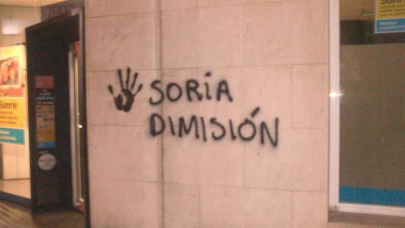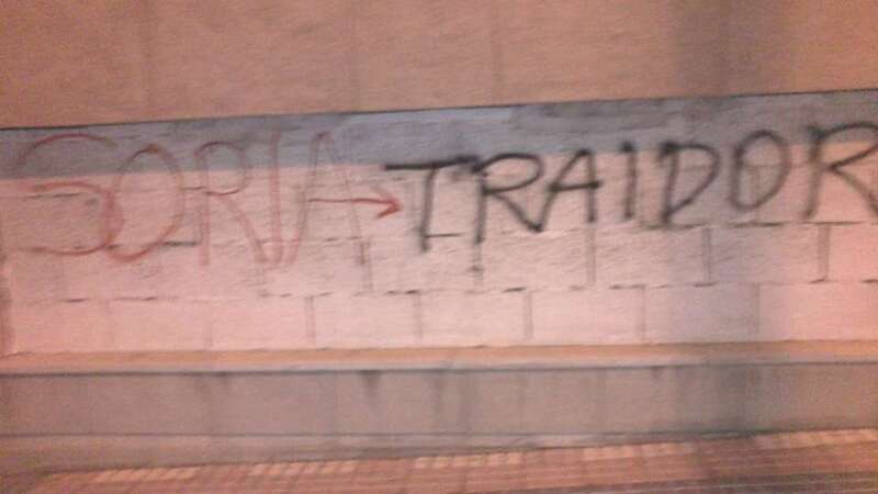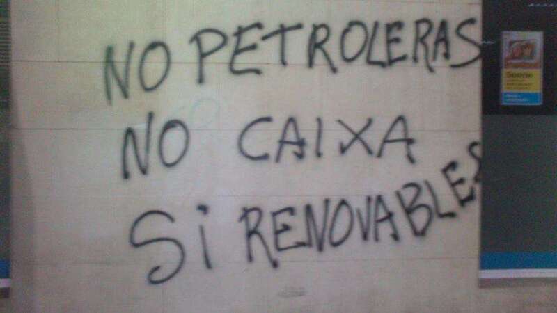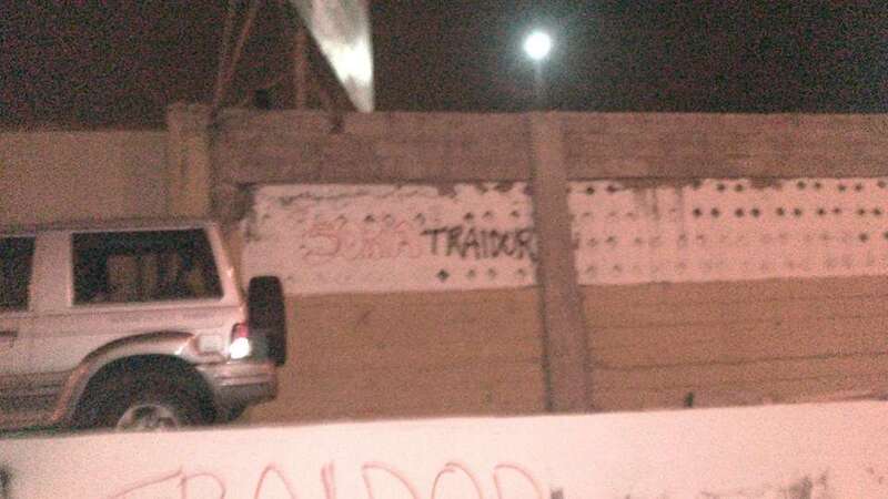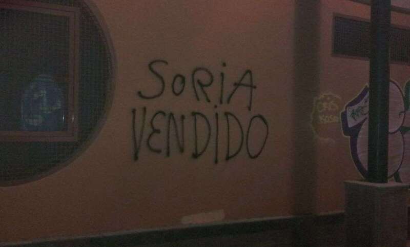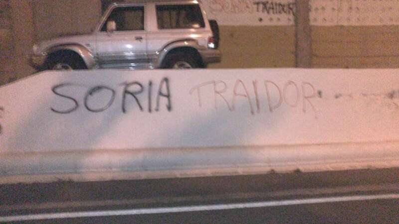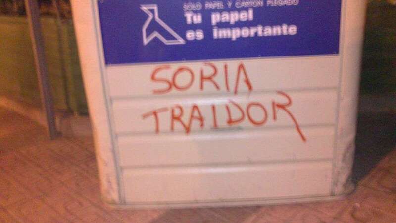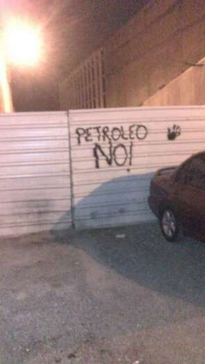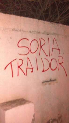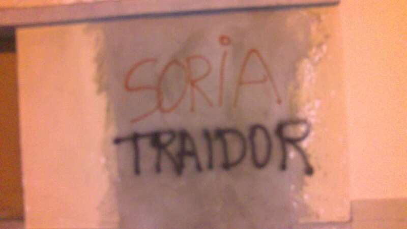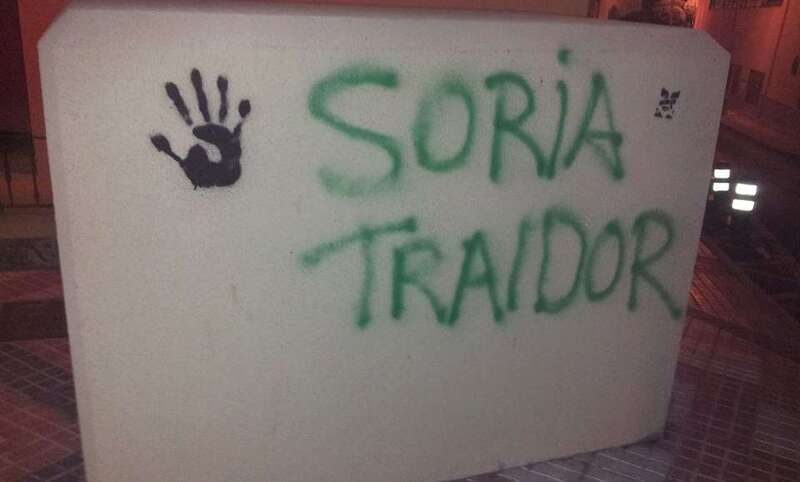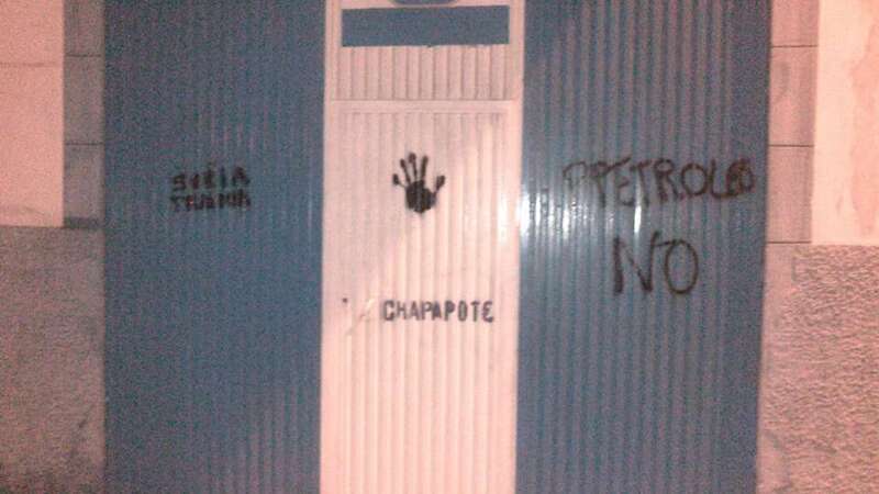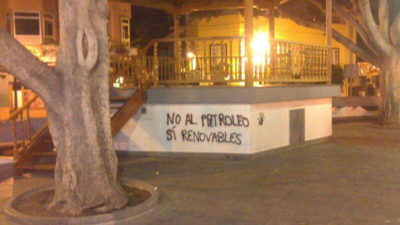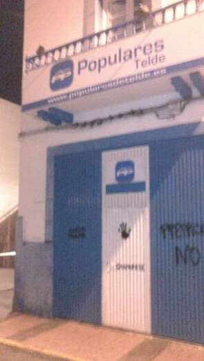 Pintadas en contra de Soria y de las prospecciones de crudo en la puerta de la sede del PP de Telde (Foto TA)
