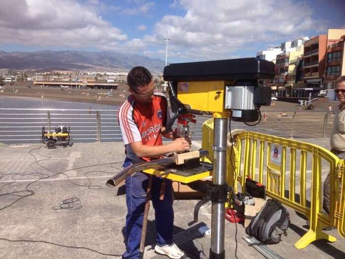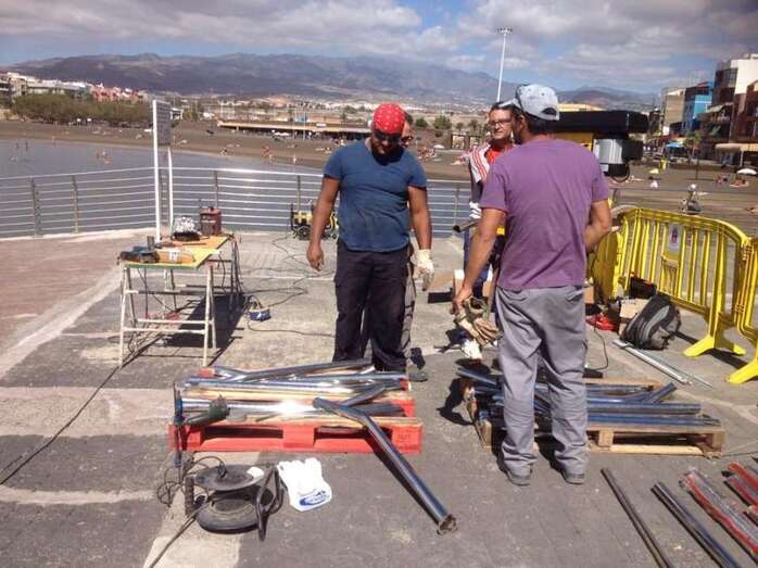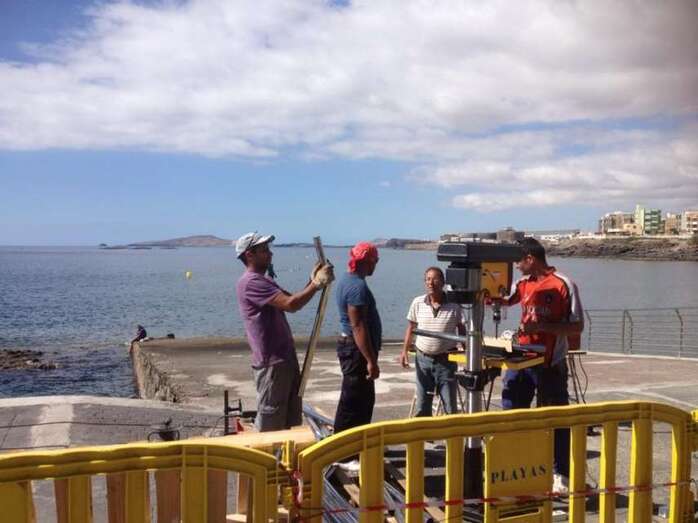 El antiguo muelle de Melenara volverá a tener la protección perimetral de barandillas de acero inoxidable que el último temporal arrancó de cuajo en varios puntos del dique. La Concejalía de Playas, que dirige la edila popular María González Calderín, se ha puesto ya manos a la obra de cara a que el espigón cuente con esta defensa para los usuarios con vistas al nuevo verano. TA avanza imágenes de los trabajos.