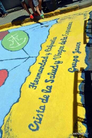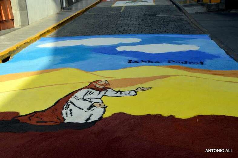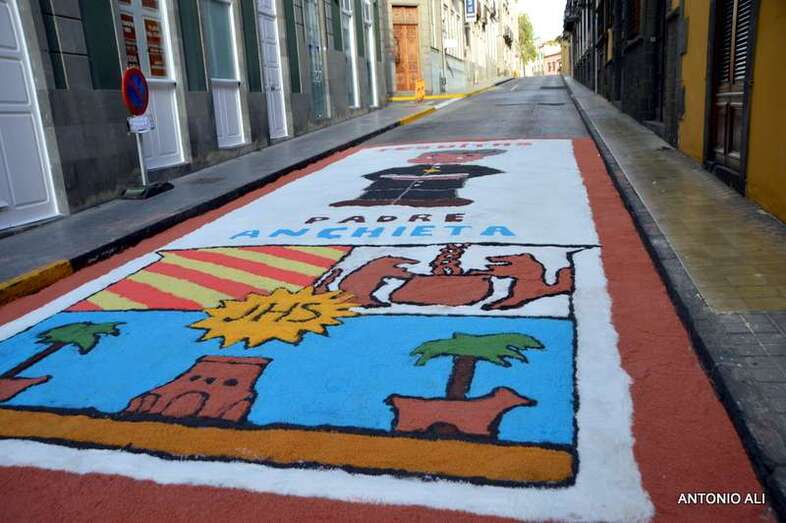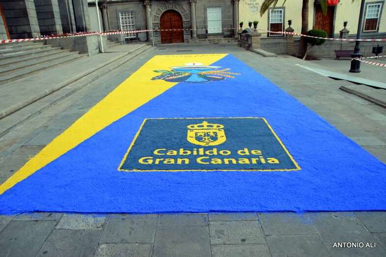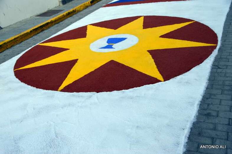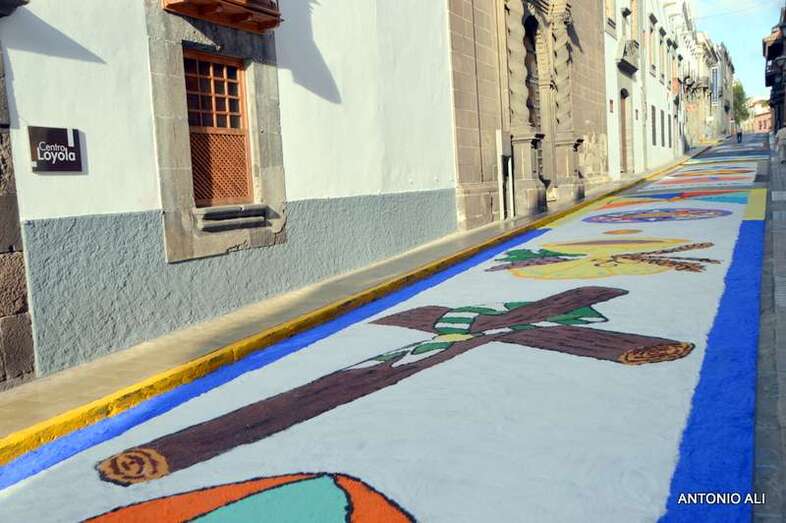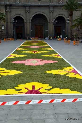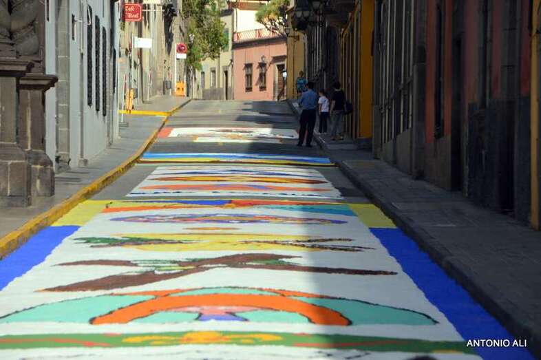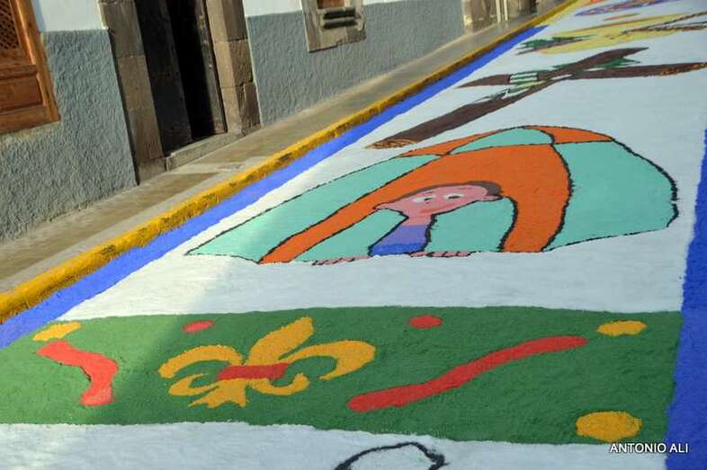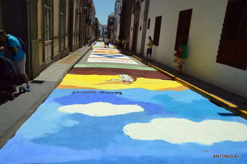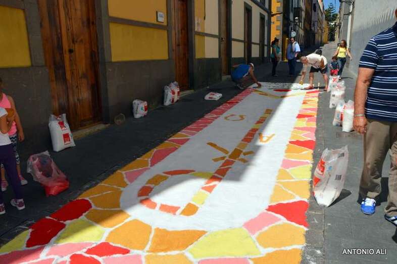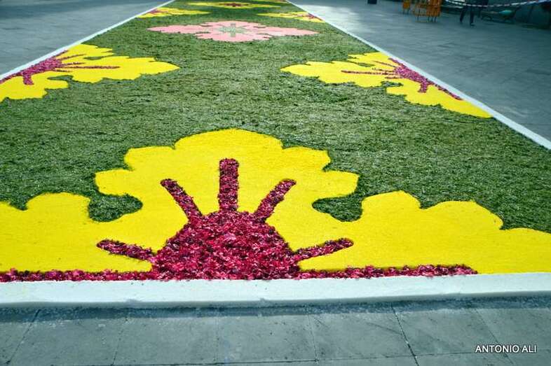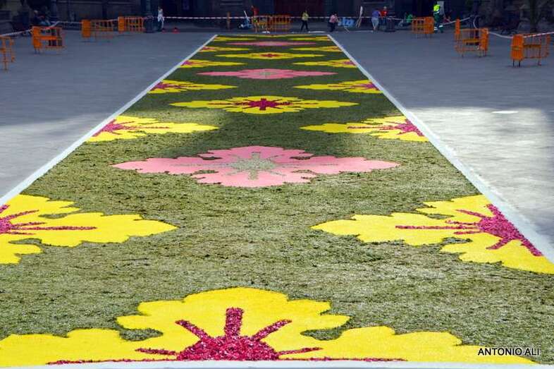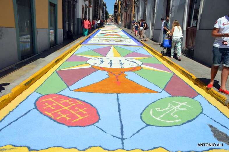 Una de las alfombras del Corpus que presidía la plaza de Santa Ana (Foto Antonio Alí)