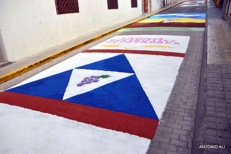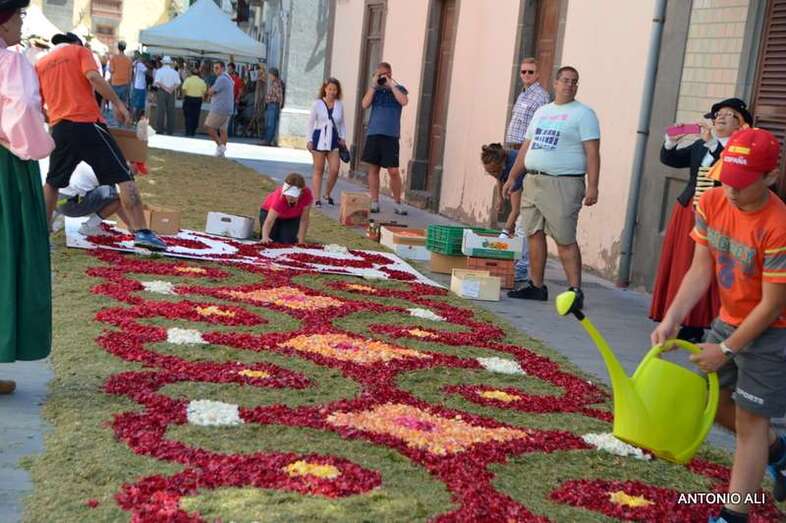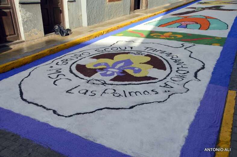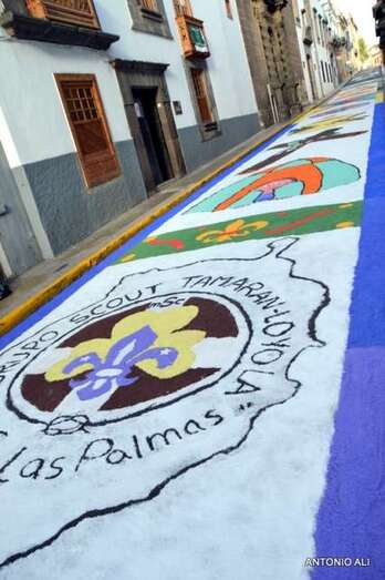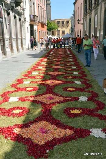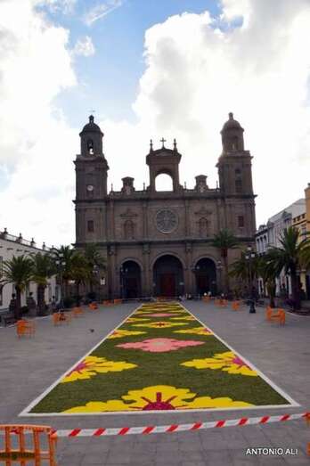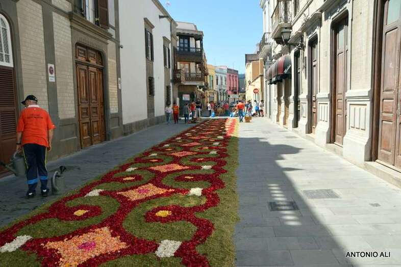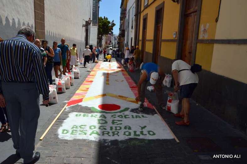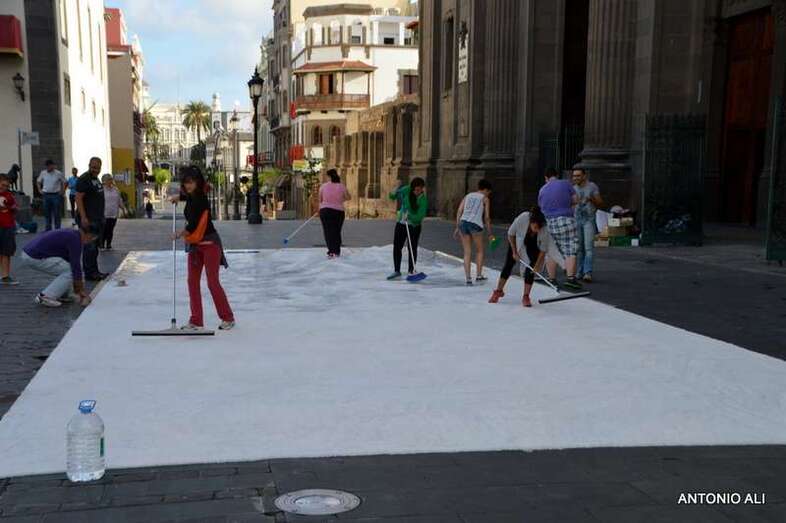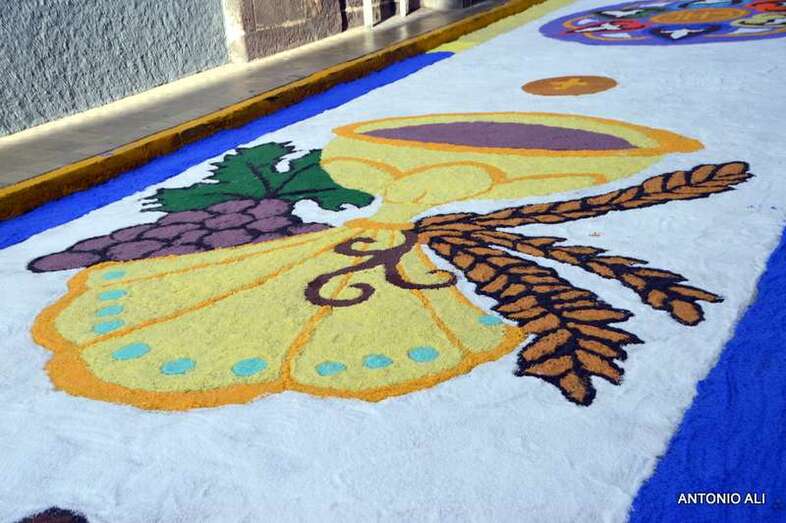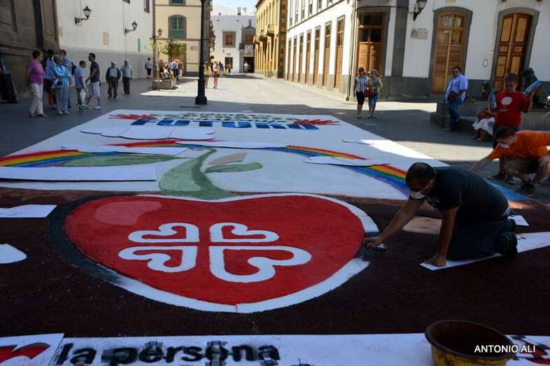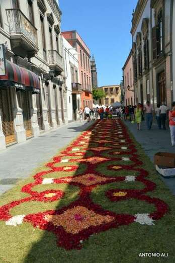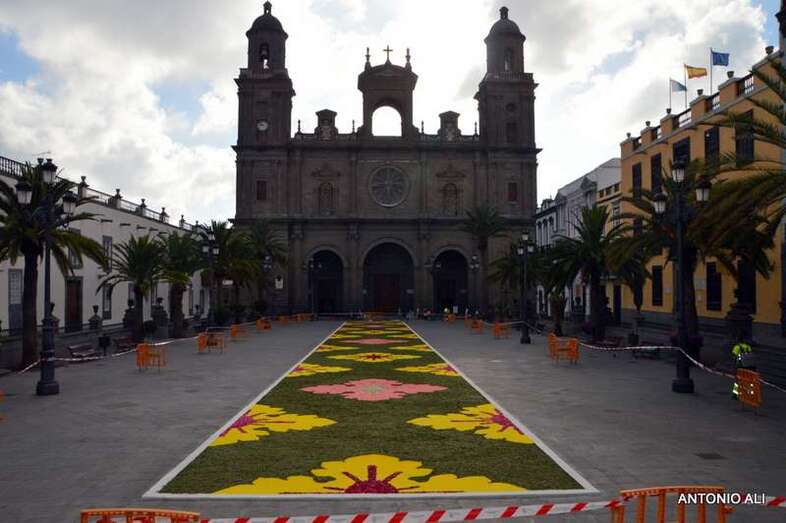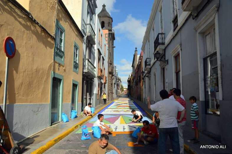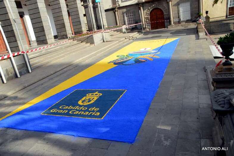 Una de las alfombras del Corpus que presidía la plaza de Santa Ana (Foto Antonio Alí)