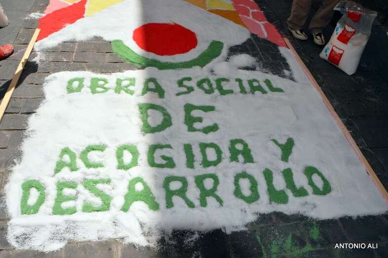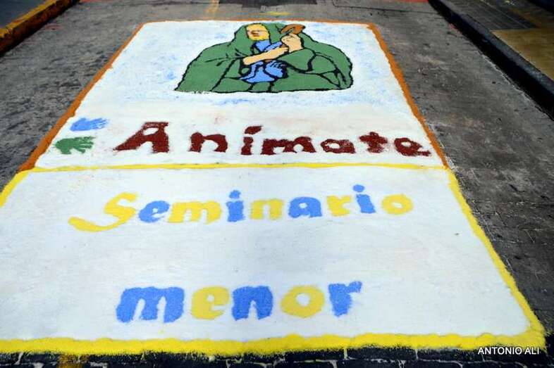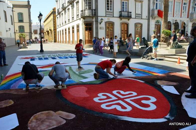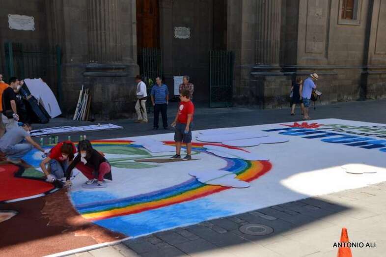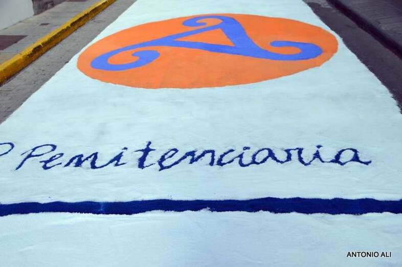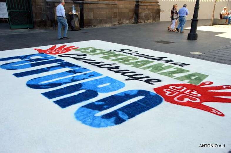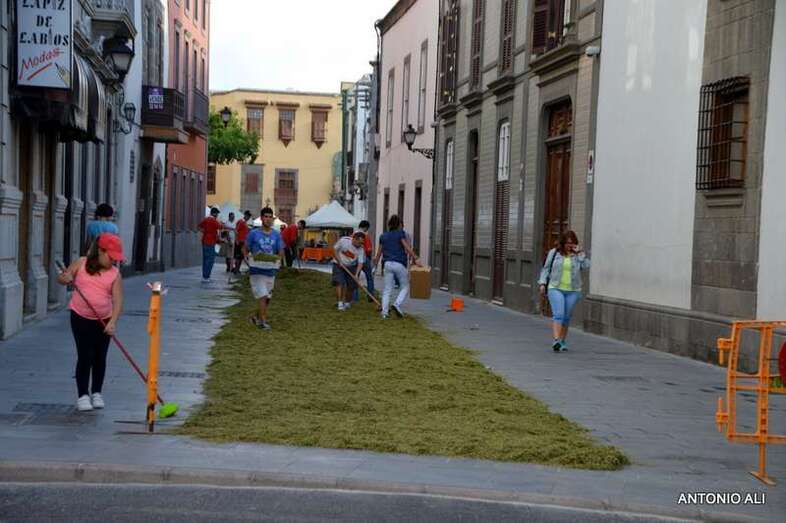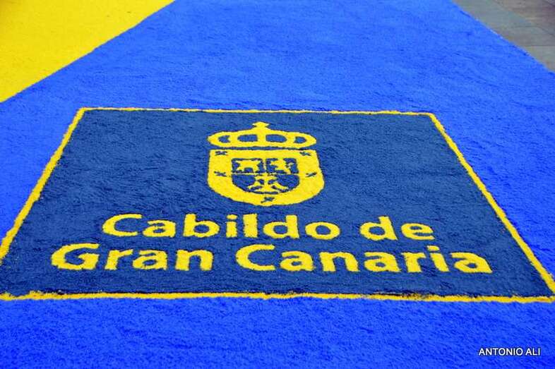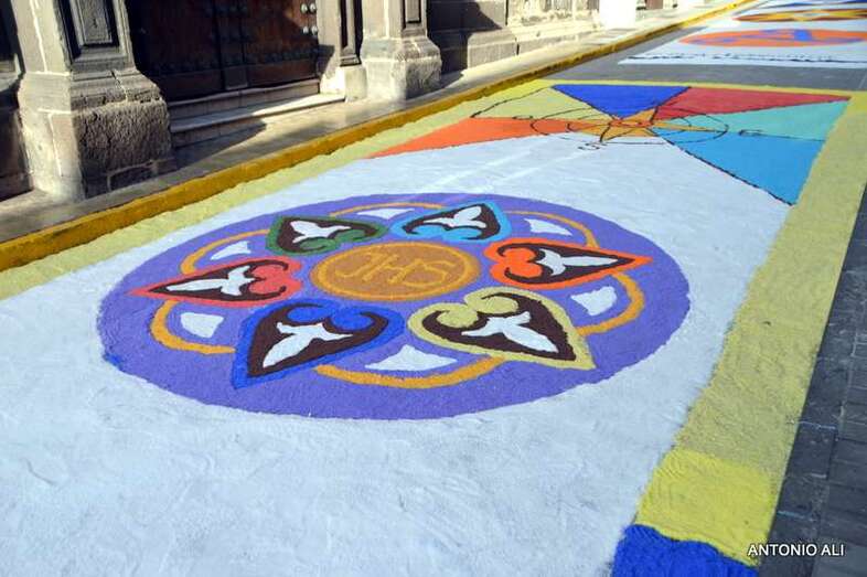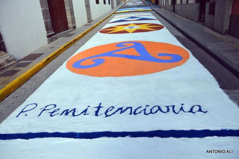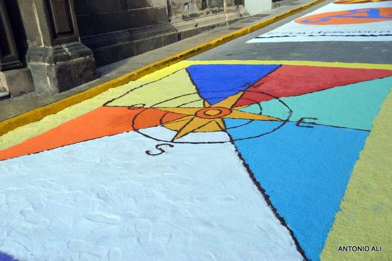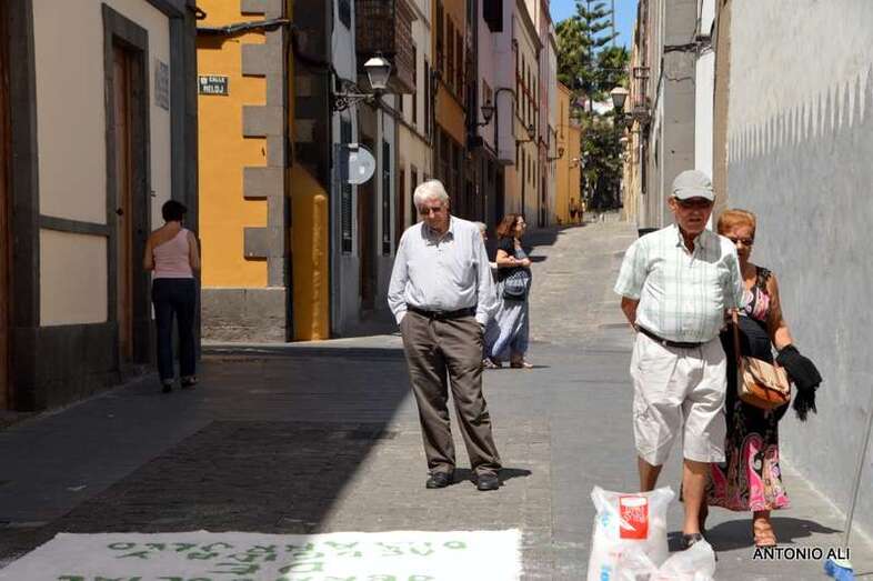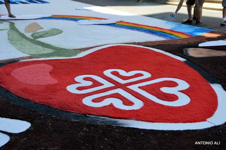 Una de las alfombras del Corpus que presidía la plaza de Santa Ana (Foto Antonio Alí)