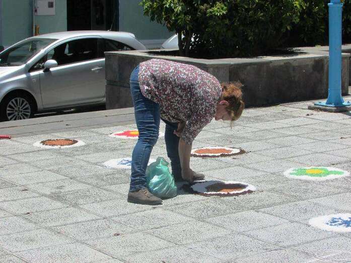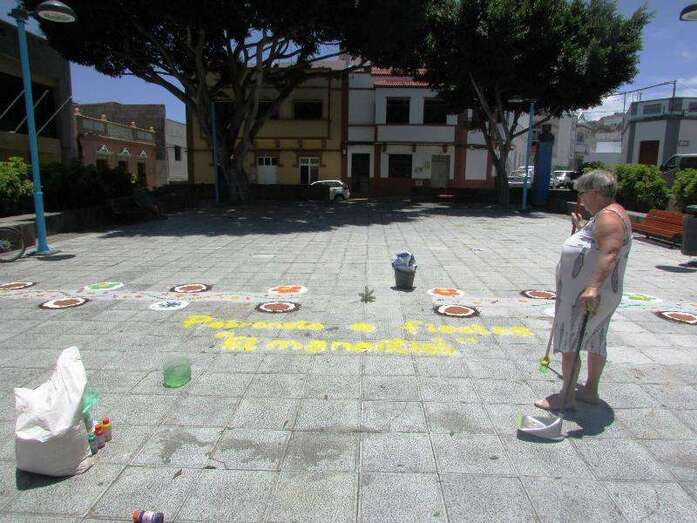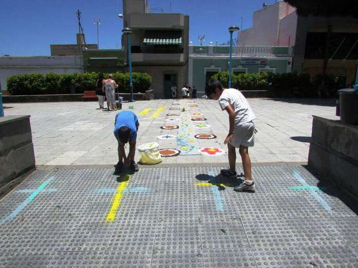 El Patronato de Fiestas El Manantial de Lomo Magullo preparó una sencilla alfombra con altar en el interior de la plaza de Las Nieves con motivo de la festividad religiosa del Corpus Christi. Fue el pasado sábado y en la confección de los diseños florales con sal colaboraron varios vecinos del lugar. TA ofrece reportaje gráfico.