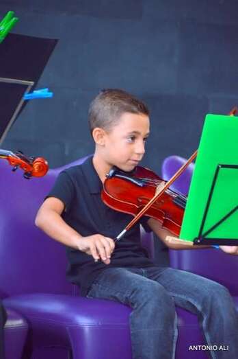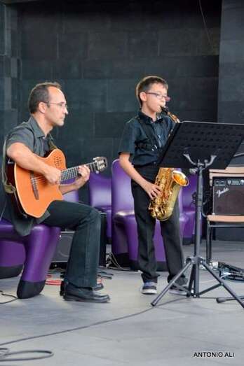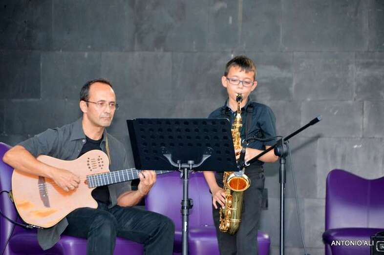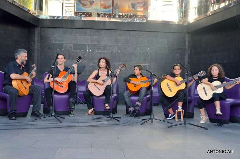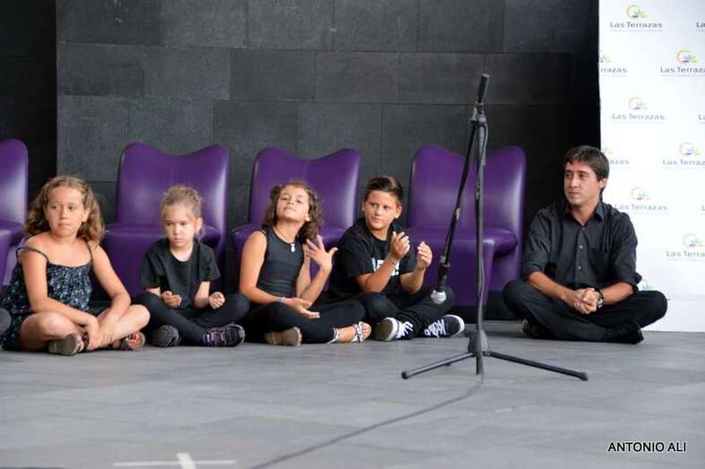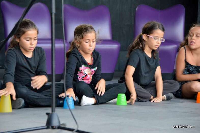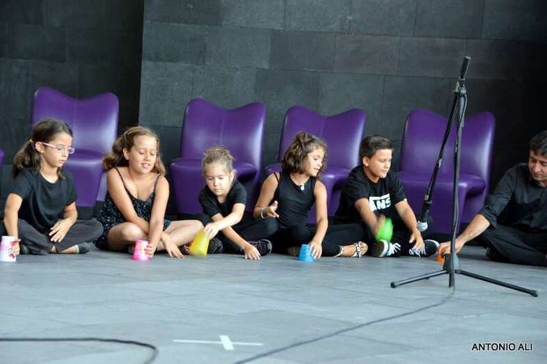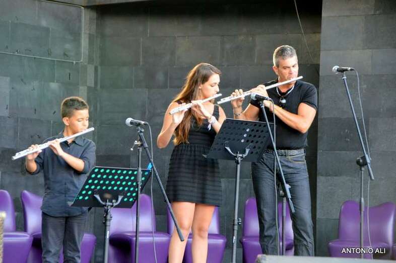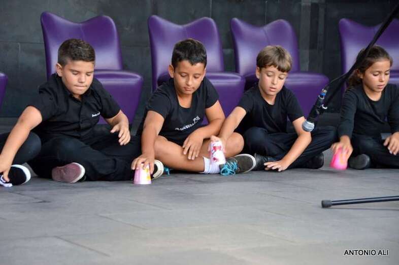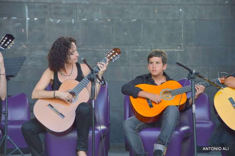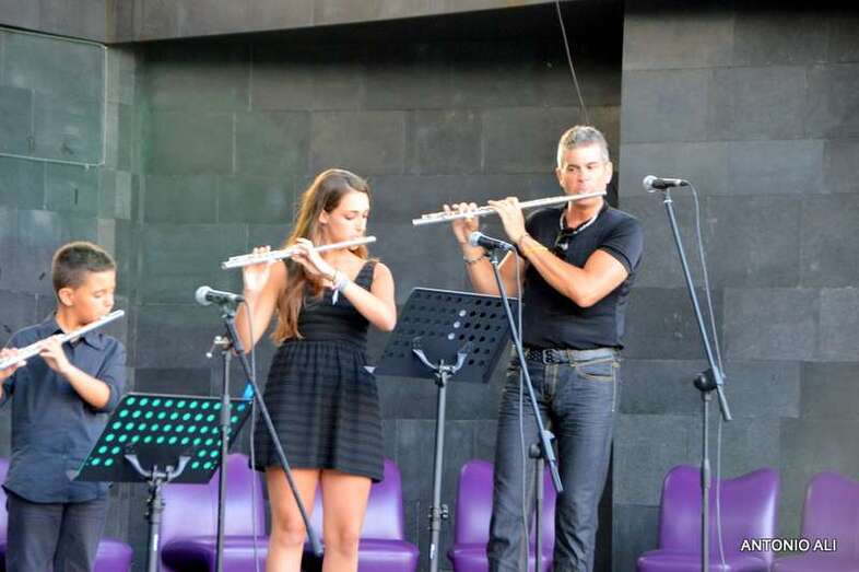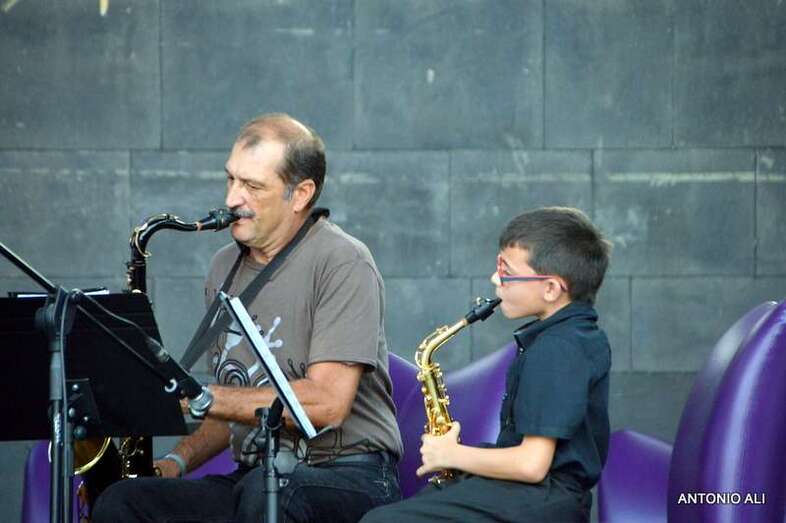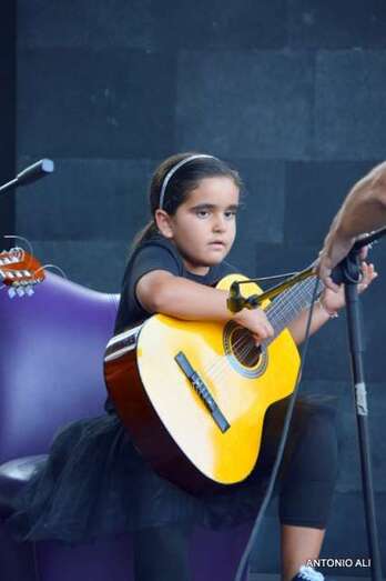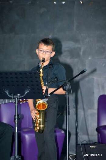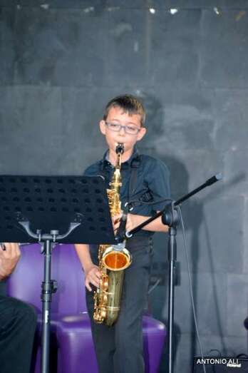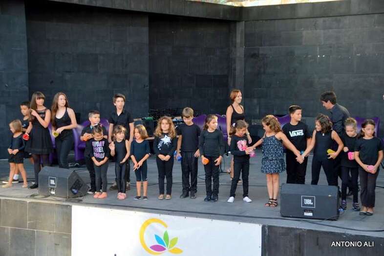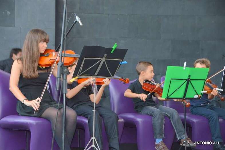 Foto de familia de los pequeños músicos y sus profesores (Foto Antonio Alí)