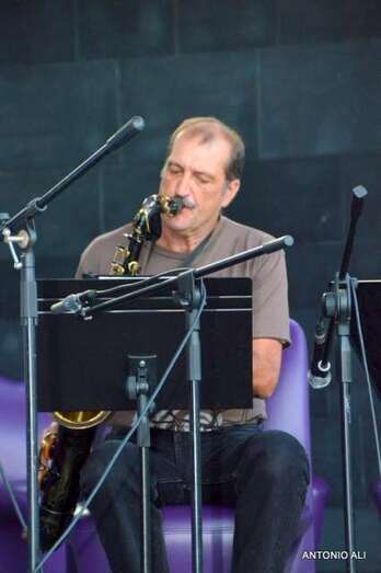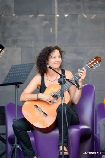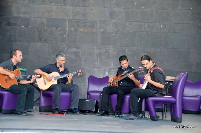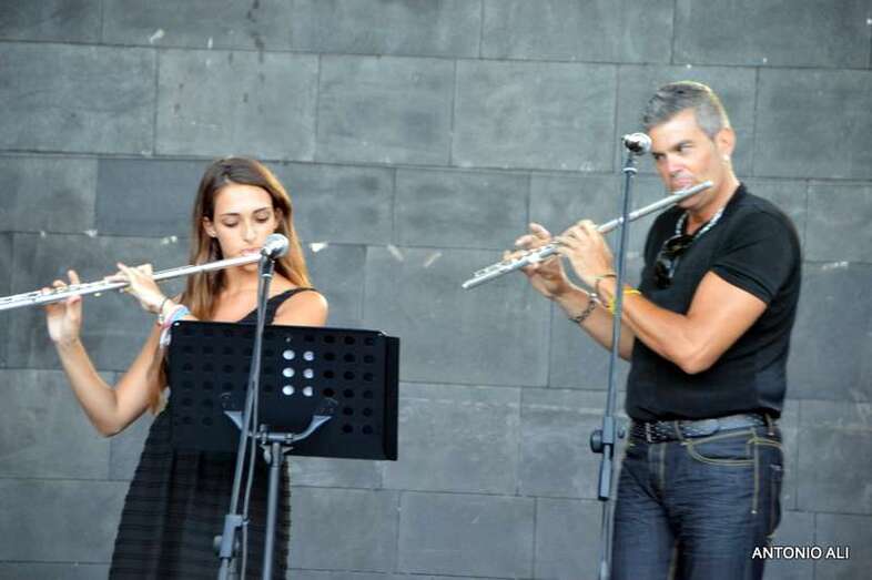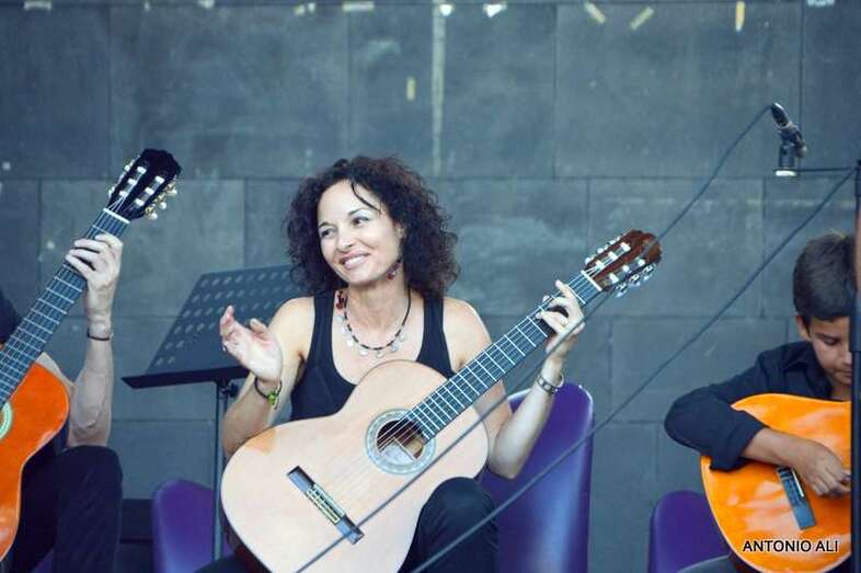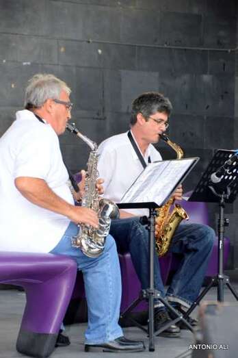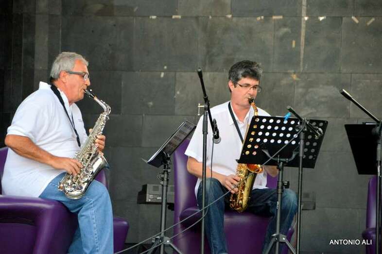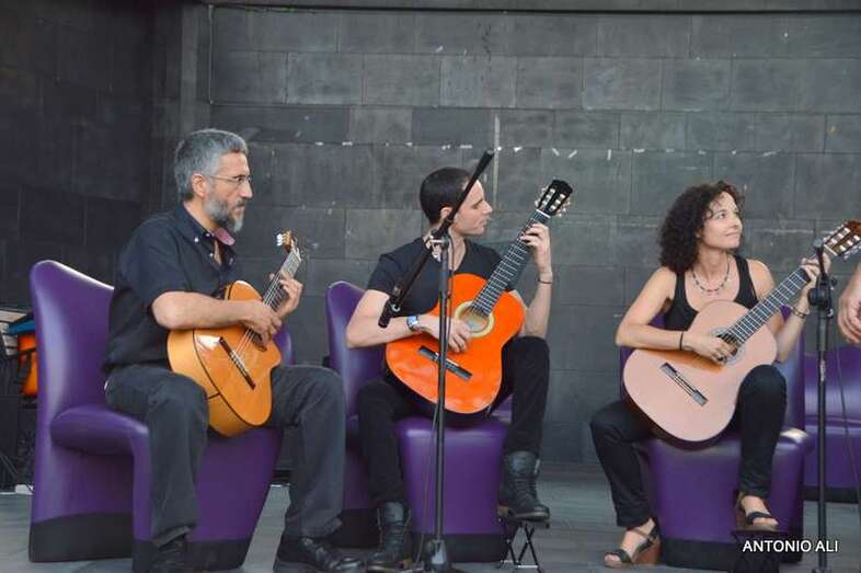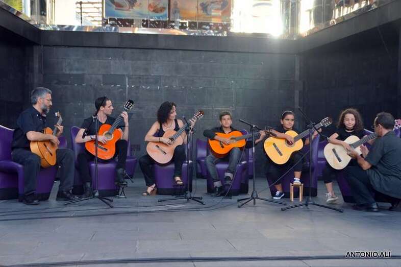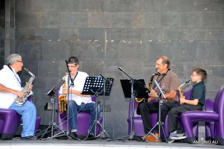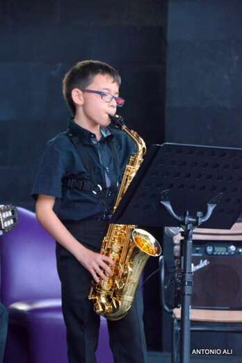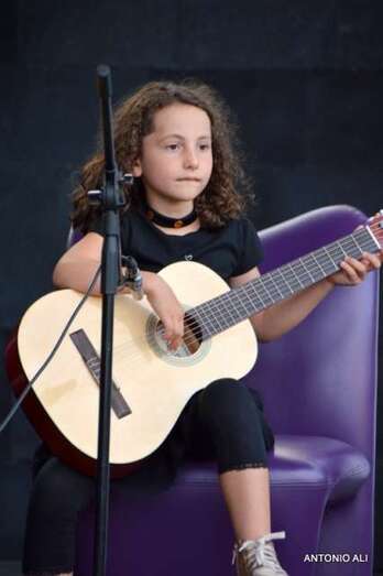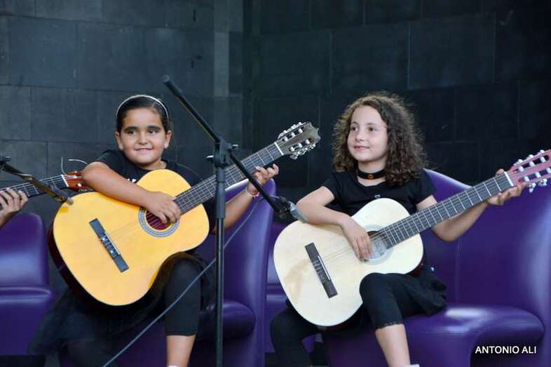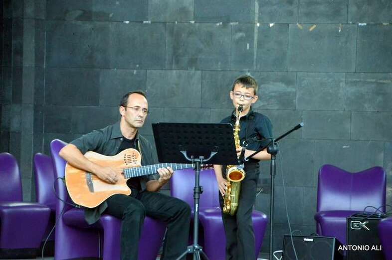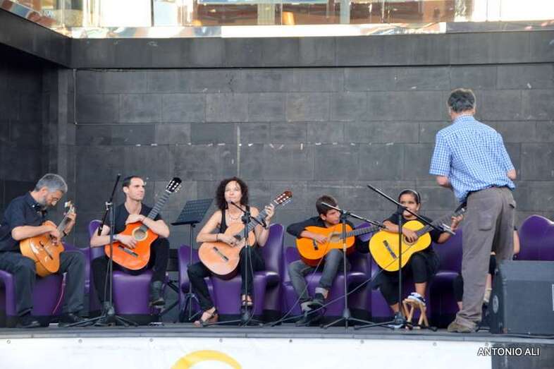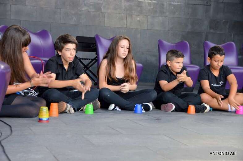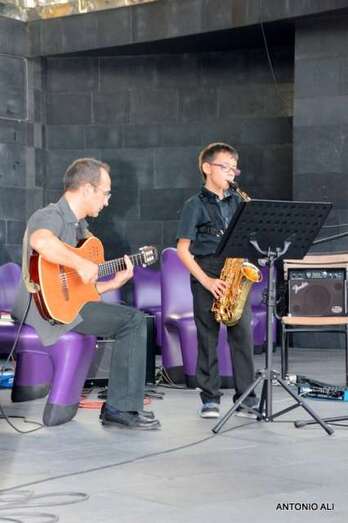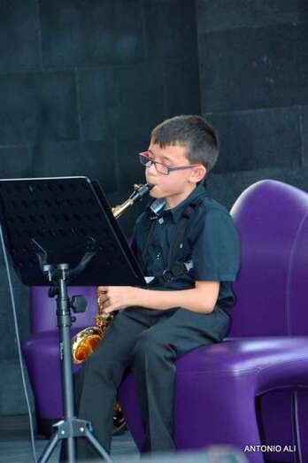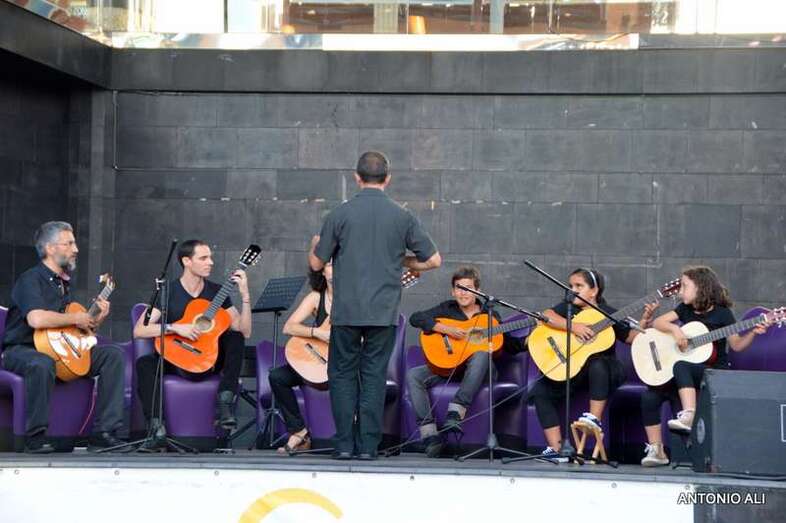 Foto de familia de los pequeños músicos y sus profesores (Foto Antonio Alí)