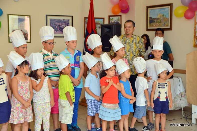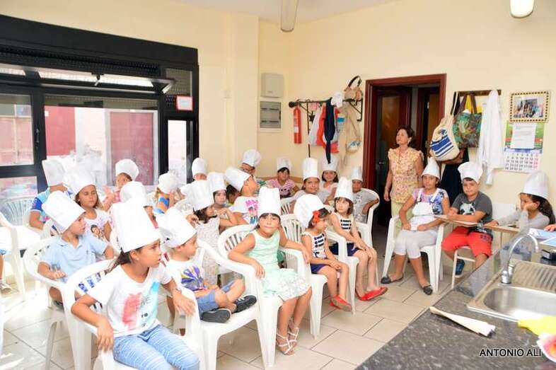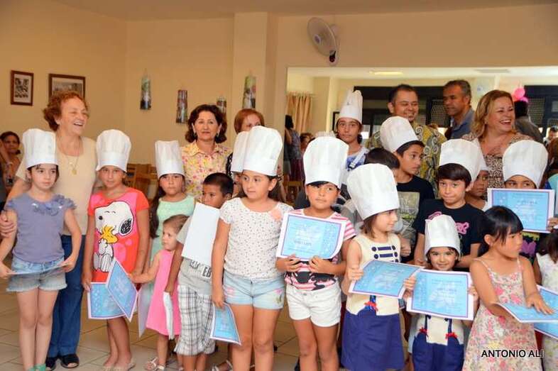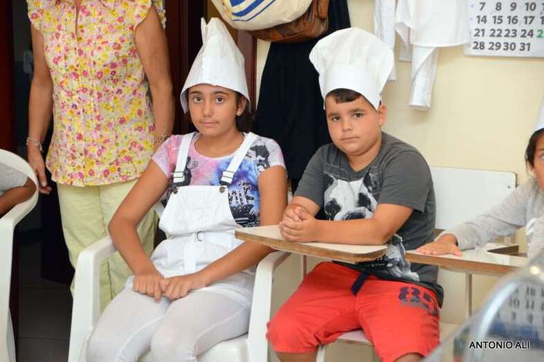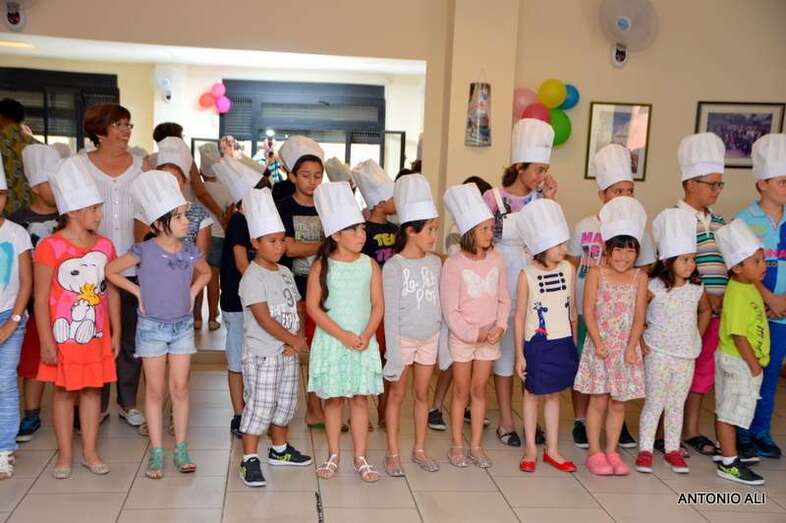 Foto de familia de los pequeños chefs con la alcaldesa y miembros del colectivo (Foto Antonio Alí)