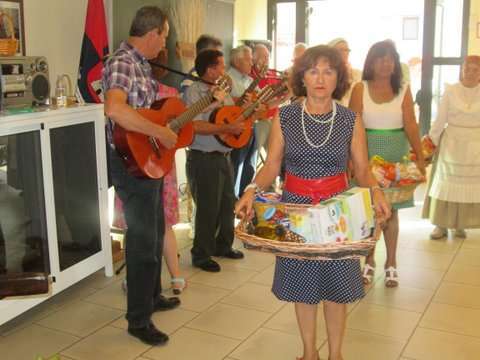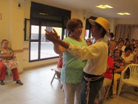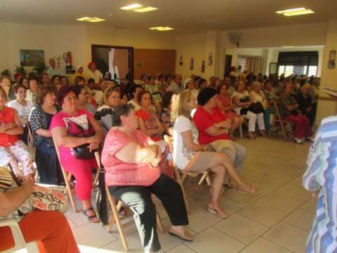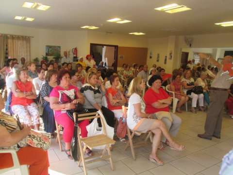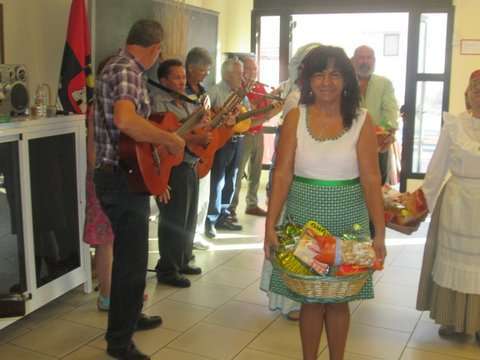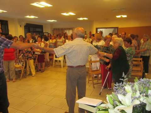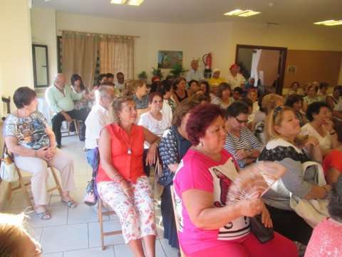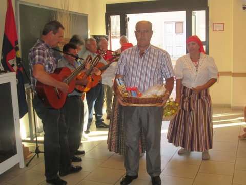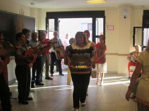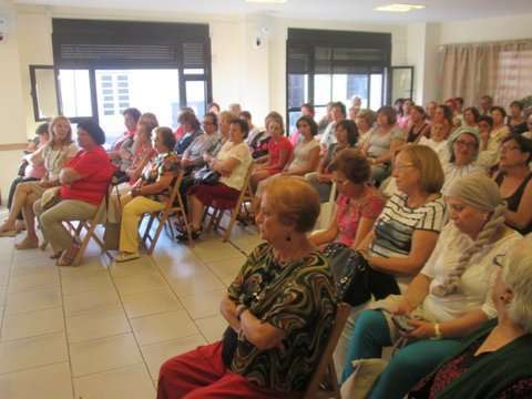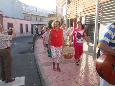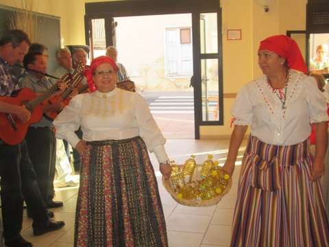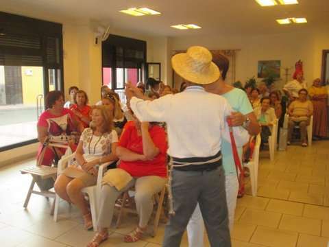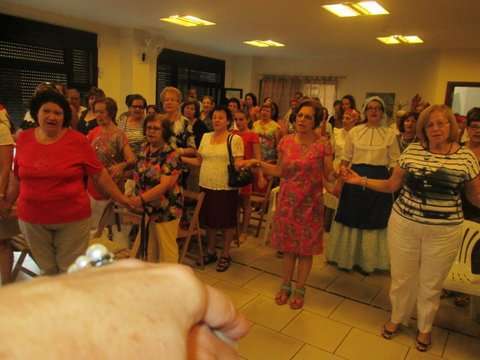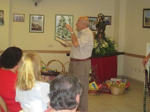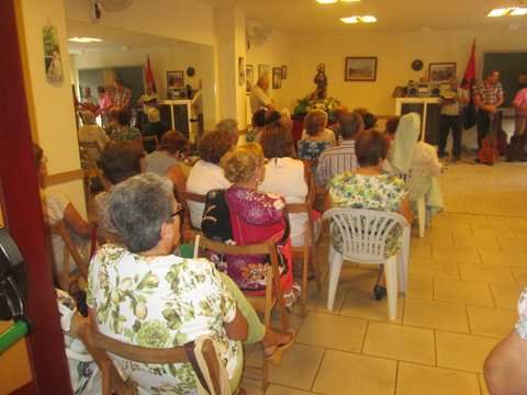 Grupo de socias del colectivo y la concejala Sonsoles Martín posan junto a la imagen del santo (Foto TA)
