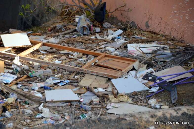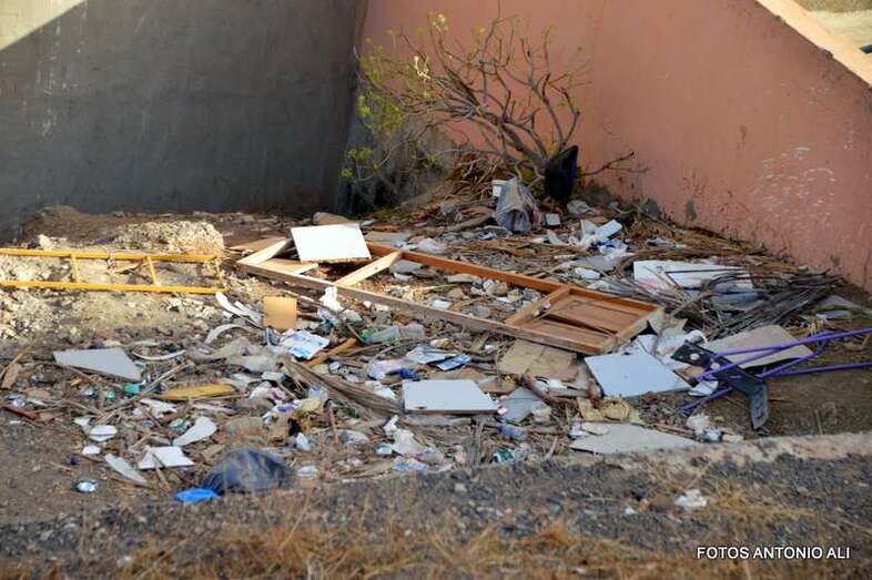 La basura se acumula en los rellanos y espacios públicos de este bloque de viviendas (Foto Antonio Alí)