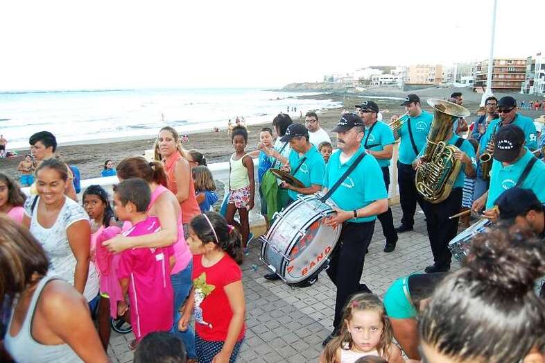 Animado pasacalle festivo por la costa de Melenara