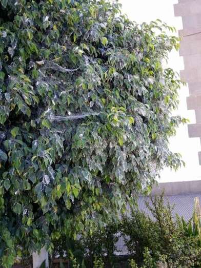 Los árboles y la vegetación de la plaza de Jinámar está siendo víctima del ataque de una plaga de mosca blanca, sin que “nadie haga nada” al respecto, denuncia un lector de TELDEACTUALIDAD. Lamenta que pese a que el problema es evidente a simple vista a los responsables de Parques y Jardines “ni se les ve ni se les espera”. TA ofrece imágenes del estado de los árboles.