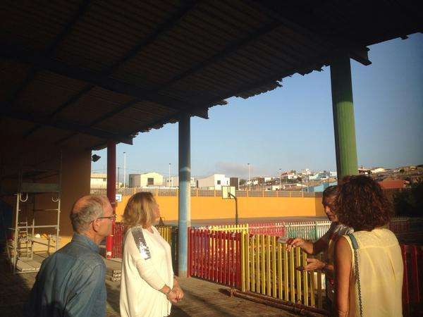 La alcaldesa de Telde, Mari Carmen Castellano, se acercó a primera hora de la mañana de este viernes a supervisar los trabajos que se están llevando a cabo en el CEIP La Garita, junto a representantes de la empresa Construcciones y Robaina y Déneiz. Las obras para arreglar el techo en mal estado comenzaron días atrás y durarán dos semanas tras varios meses de reclamaciones de los padres por el peligro que implicaba el mal estado del porche. Se cambiarán  335 metros de chapa en mal estado por paneles metálicos con tratamiento especial para evitar la oxidación. Los trabajos se ejecutan por la tarde para no interferir en la actividad del centro.