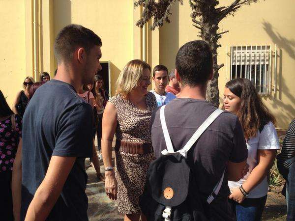 La alcaldesa y el cónsul de Italia, este viernes con los alumnos en el IES José Frugoni (Foto TA)
