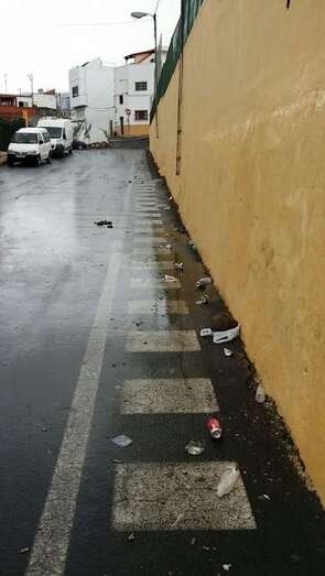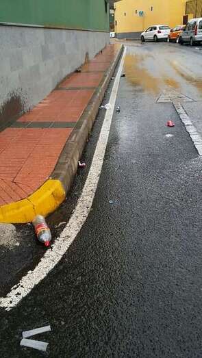 Botellines y suciedad en una calle del Valle de los Nueve (Foto TA)