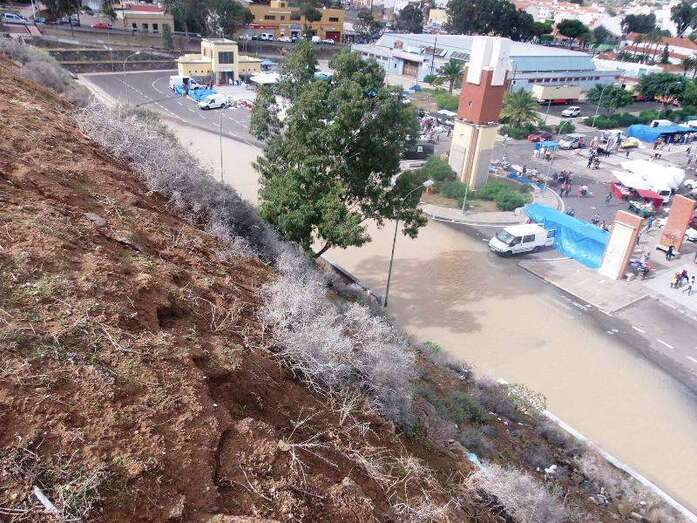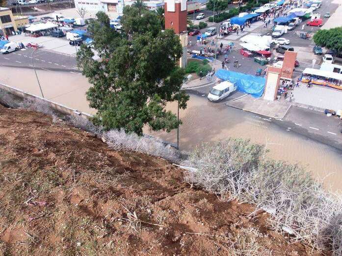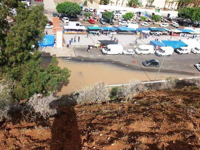 Charcos en Melenara y Jinámar y desembocadura de un barranco en la playa (Foto TA)