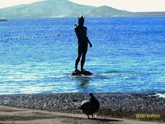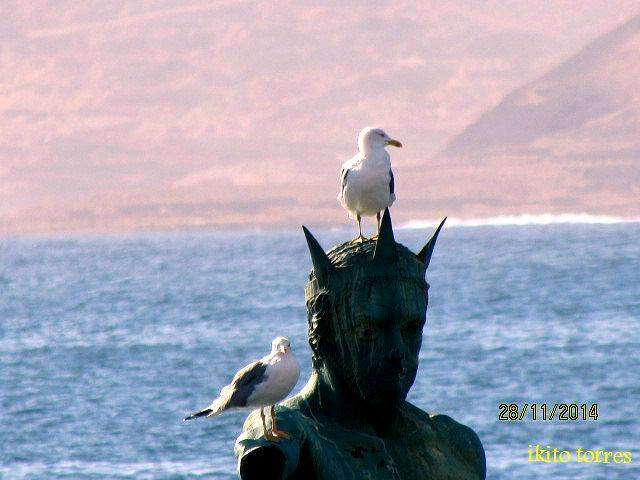 Dos gaviotas posadas en la escultura de El Neptuno (Foto Ikito Torres)