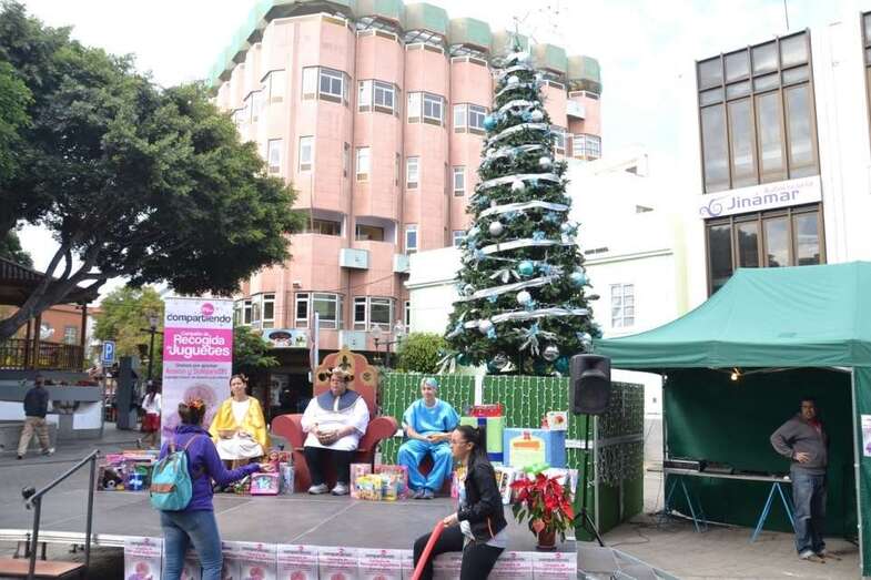 Los pajes en el escenario donde se reciben juguetes durante toda la jornada (Foto TA)
