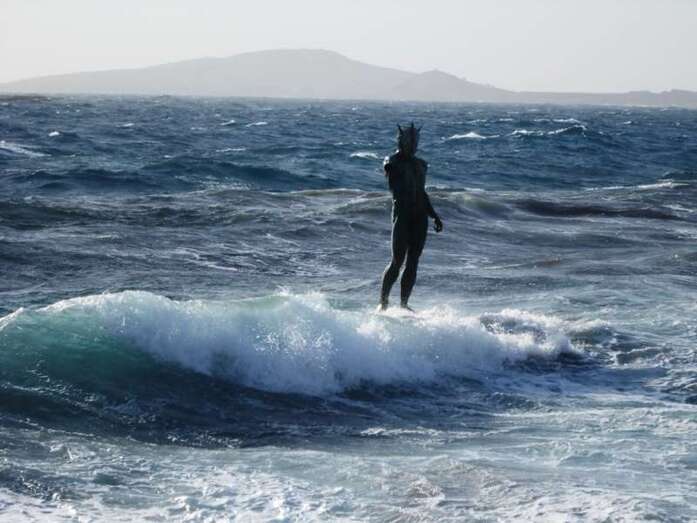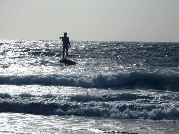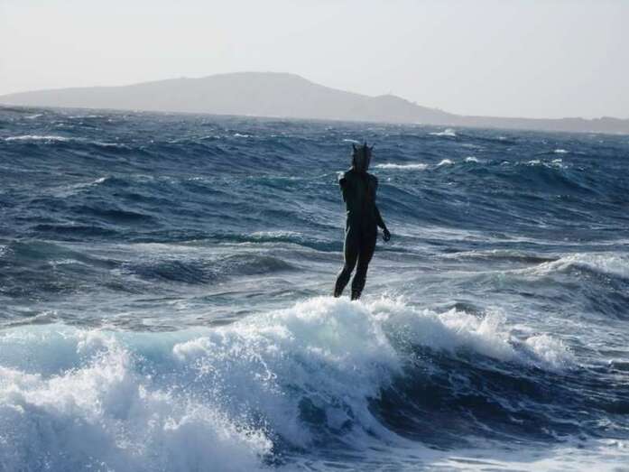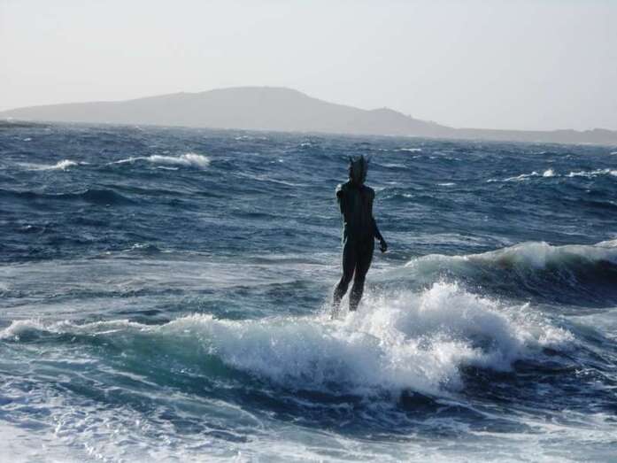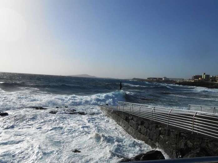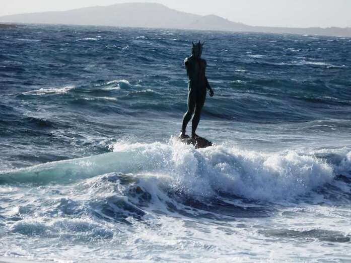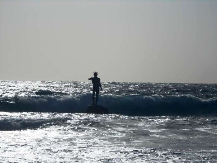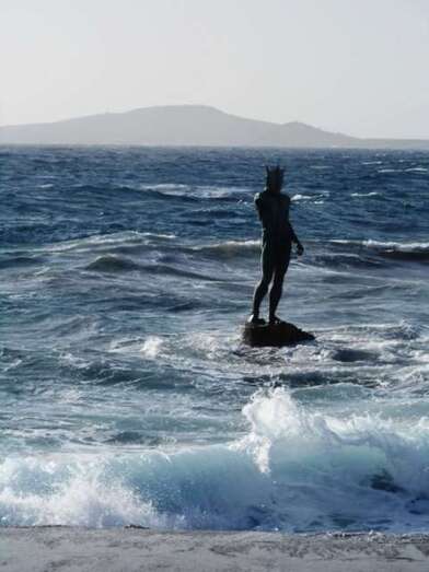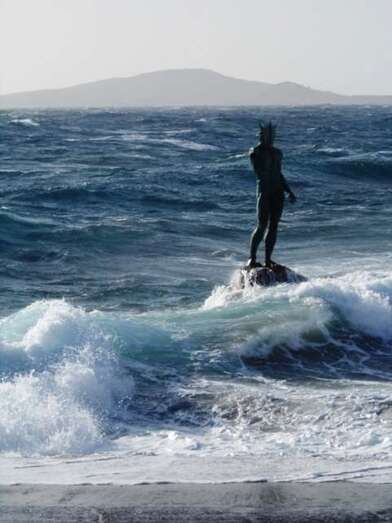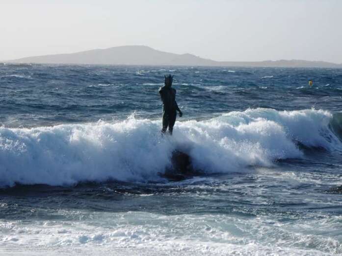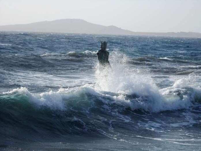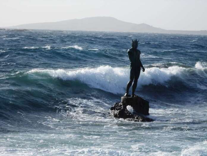 La escultura de Neptuno aguanta el temporal (Foto Gumersindo Hernández)