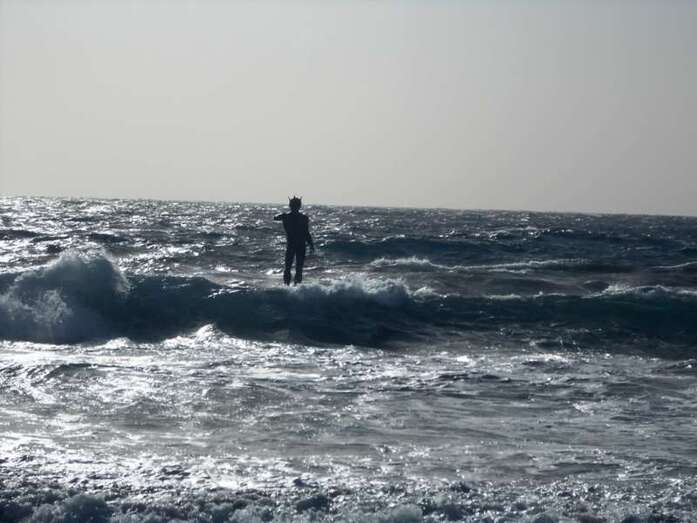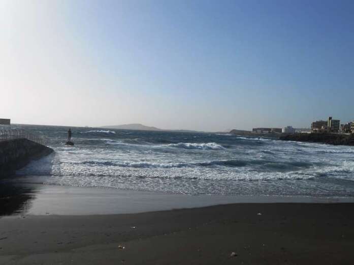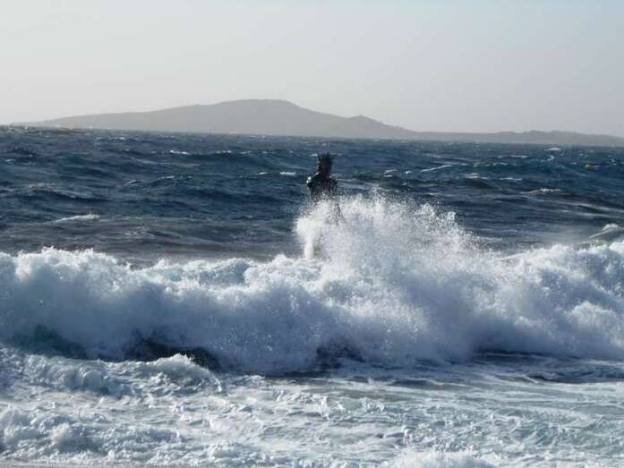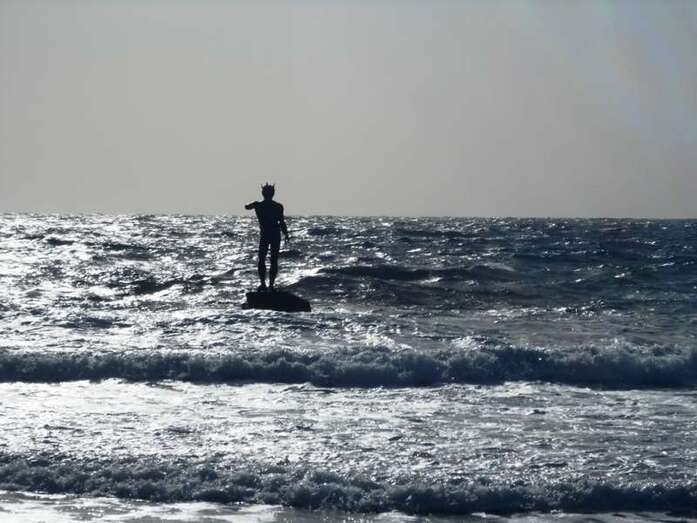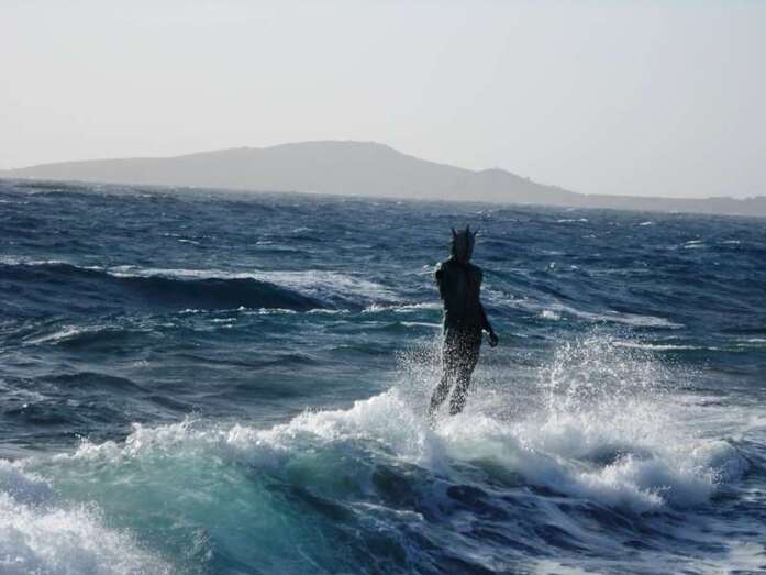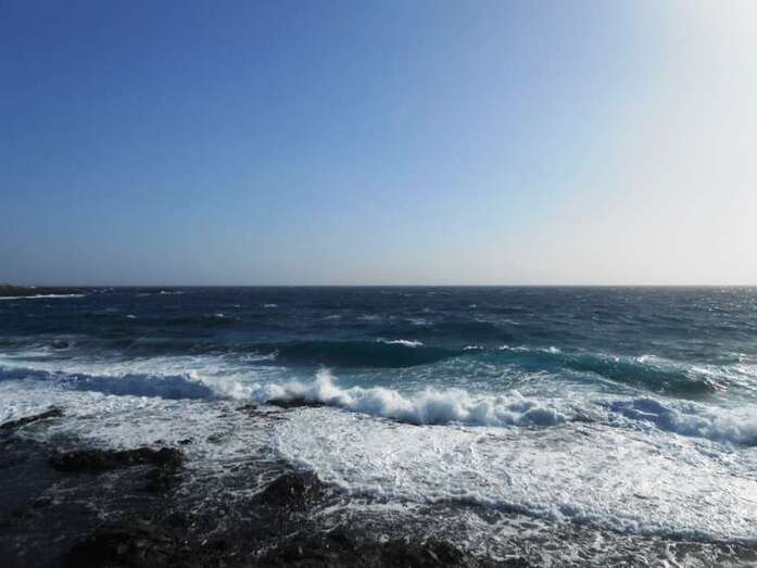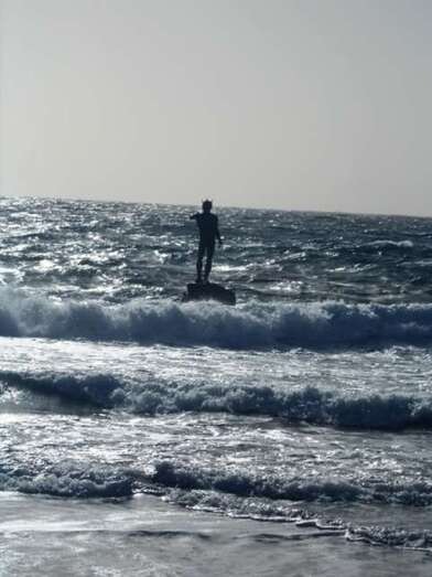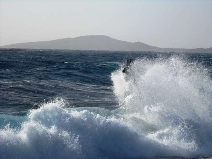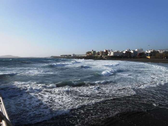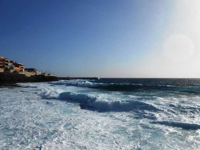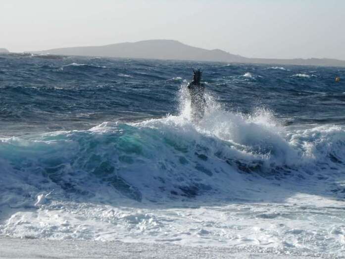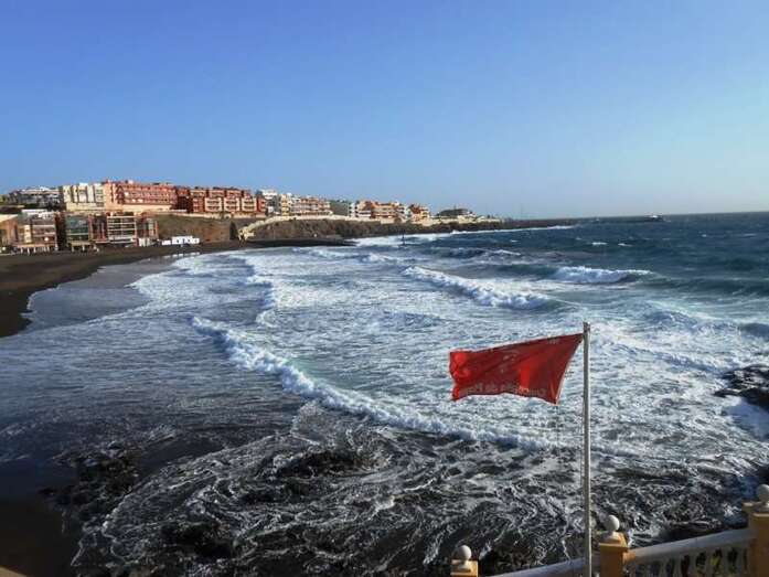 La escultura de Neptuno aguanta el temporal (Foto Gumersindo Hernández)