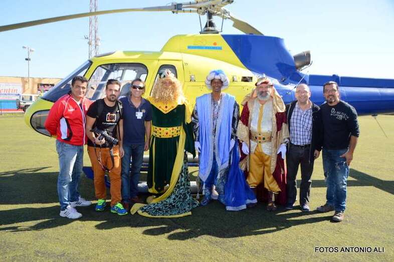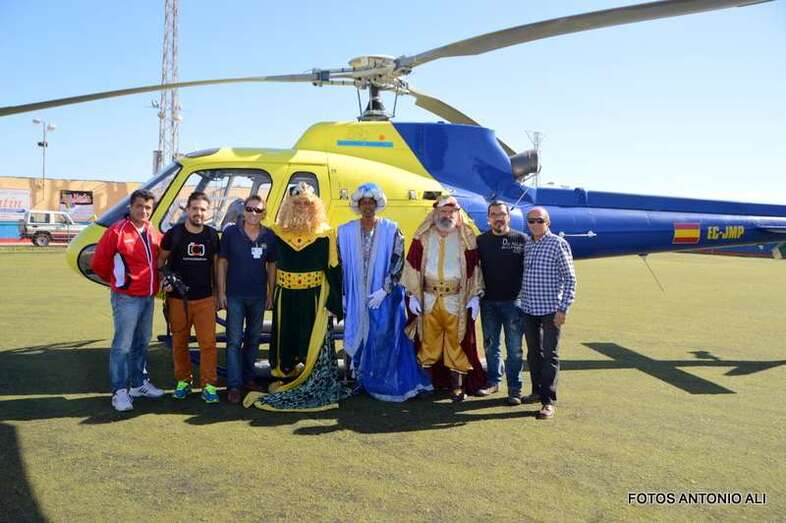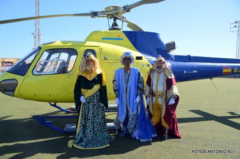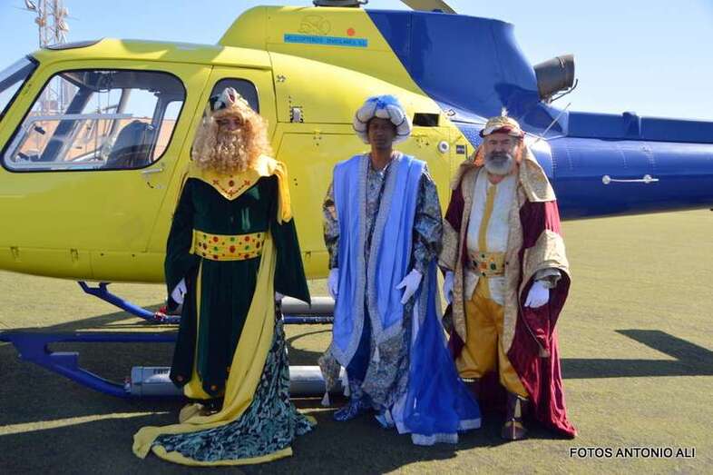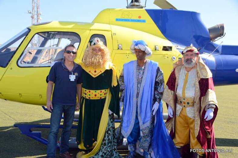Melchor, Gaspar y Baltasar a bordo del helicóptero real (Foto Antonio Alí)