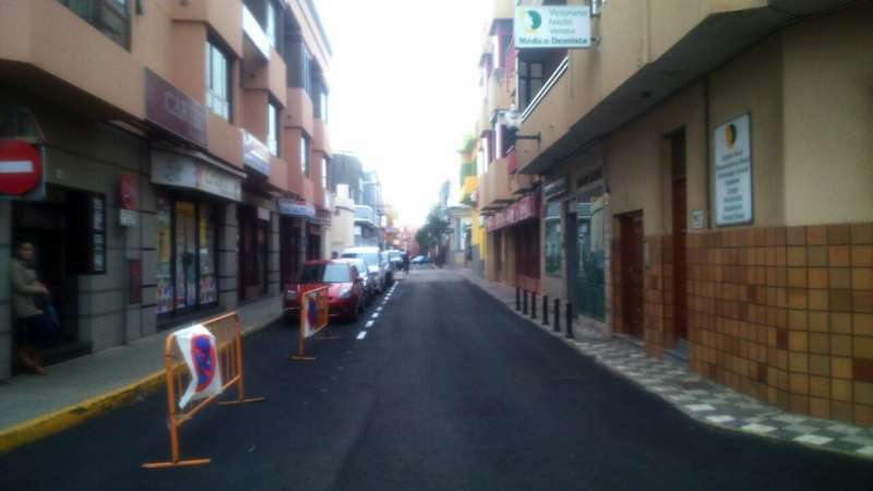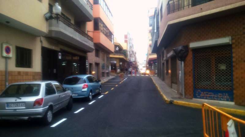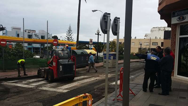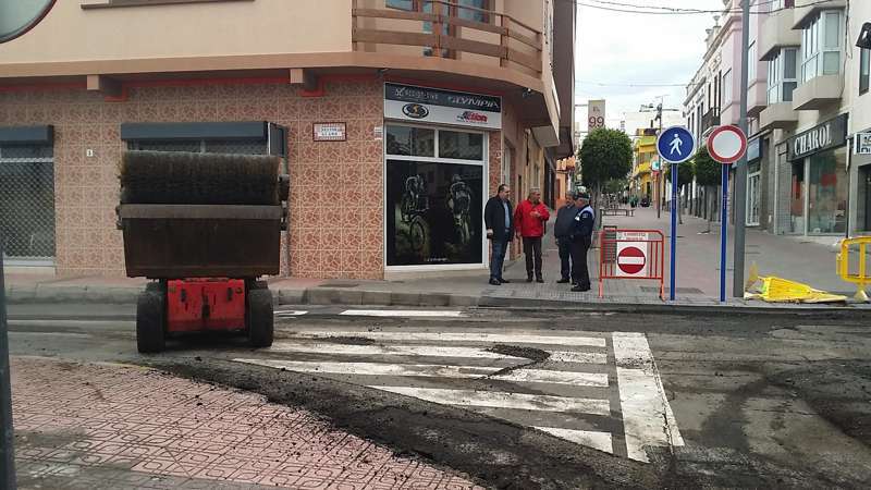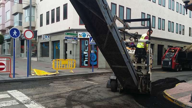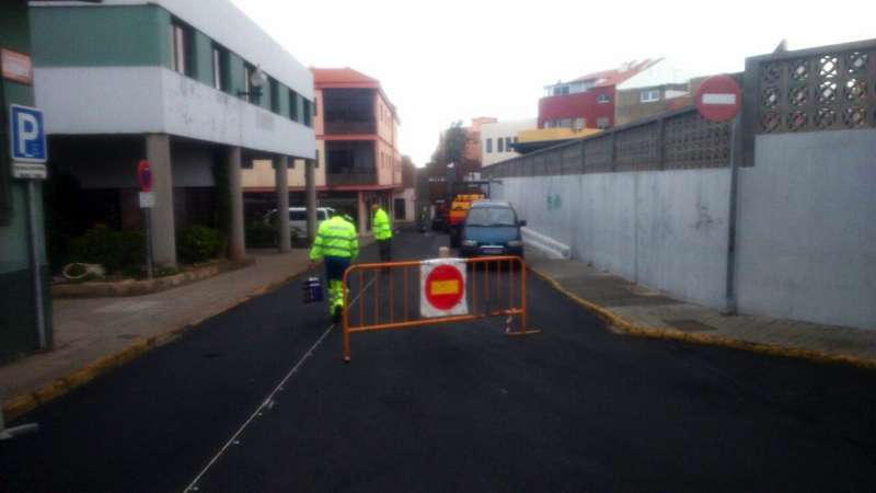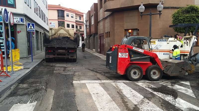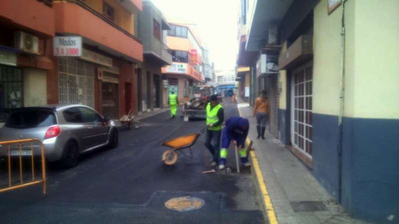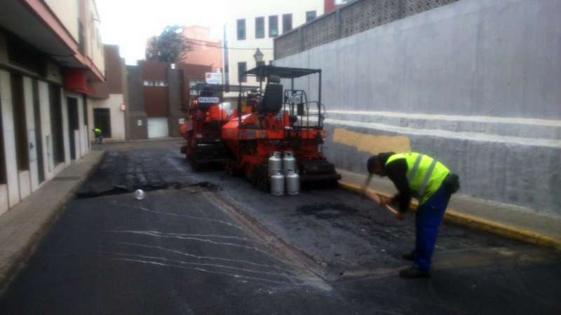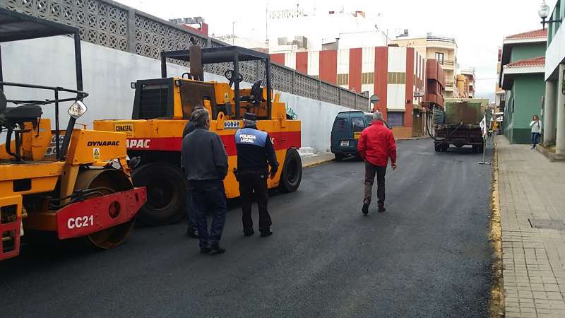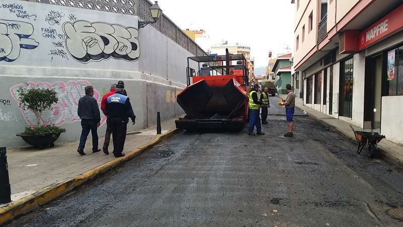 Imagen de las obras de asfaltado en la calle Néstor Álamo, en la ZCA de San Gregorio (Foto TA)