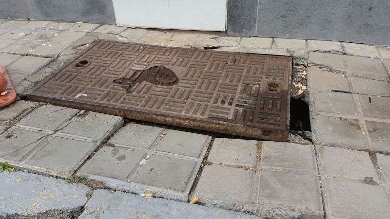 Tapa levantada de la peligrosa arqueta (Foto TA) Tapa levantada de la peligrosa arqueta (Foto TA)