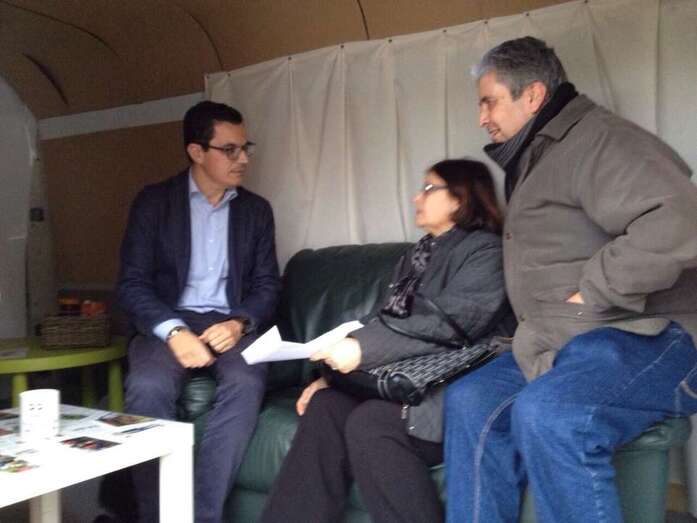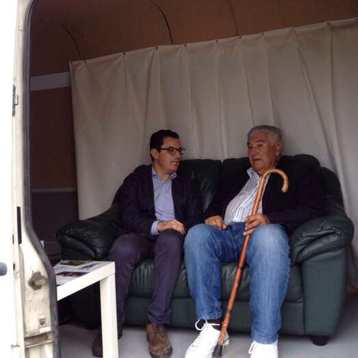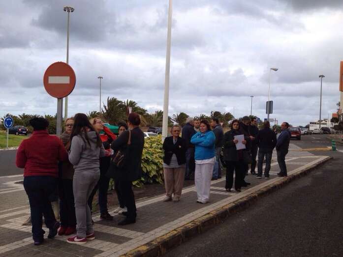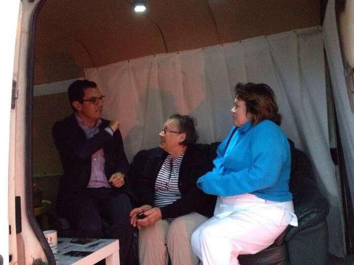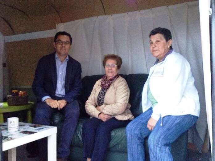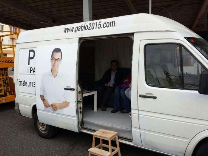 Un grupo de vecinos aguarda junto a la oficina móvil de CC Telde para reunirse con su candidato (Foto TA)