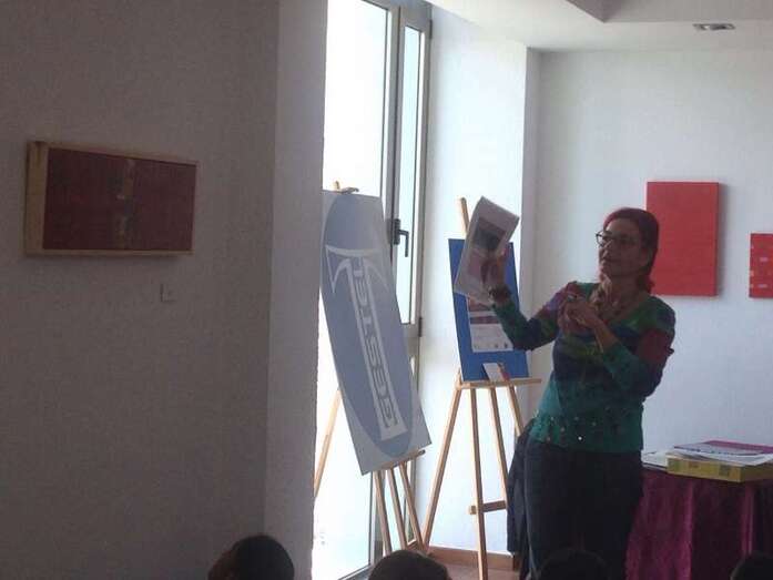 Marta Vega con alumnos del colegio María Auxiliadora (Foto TA)