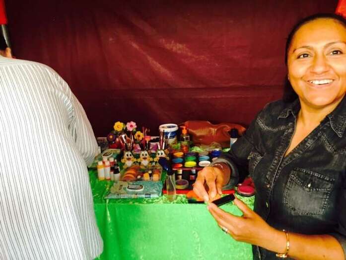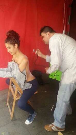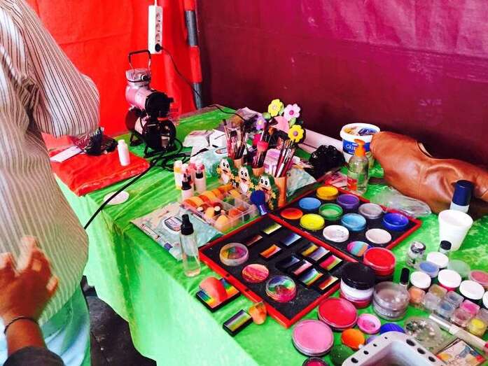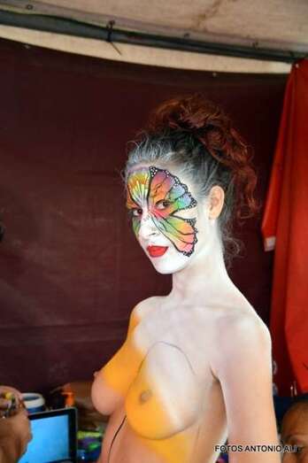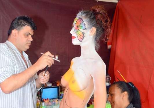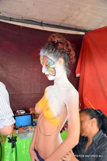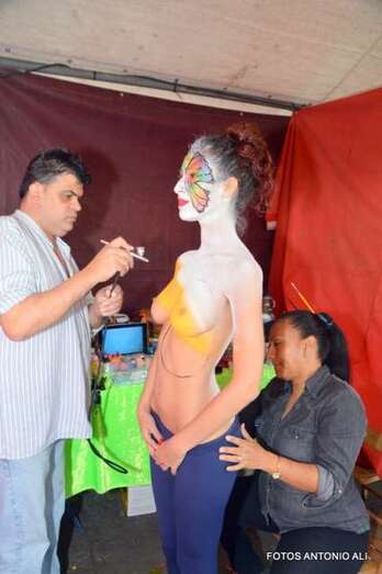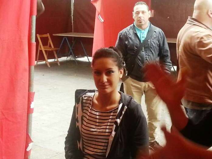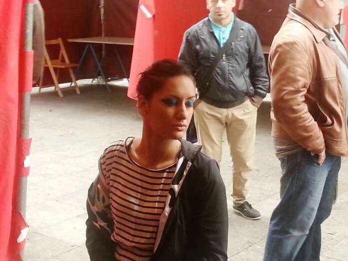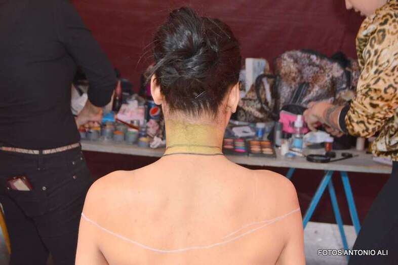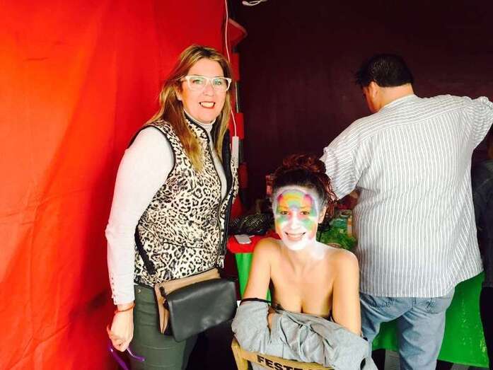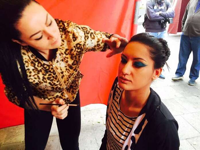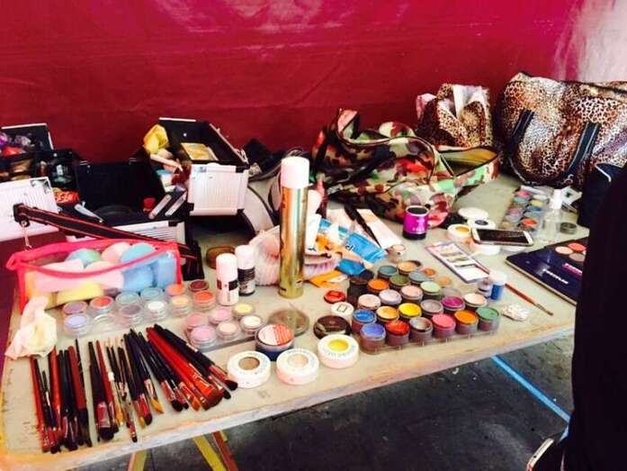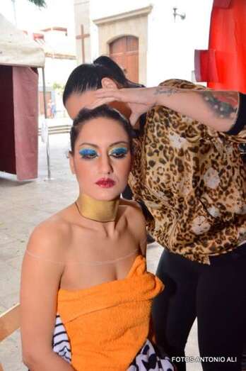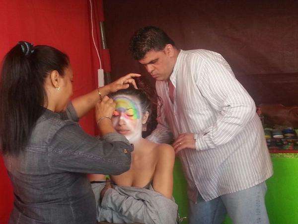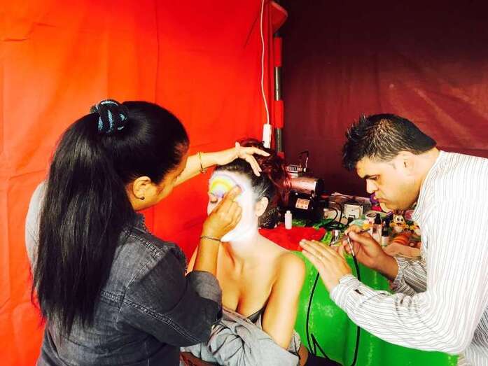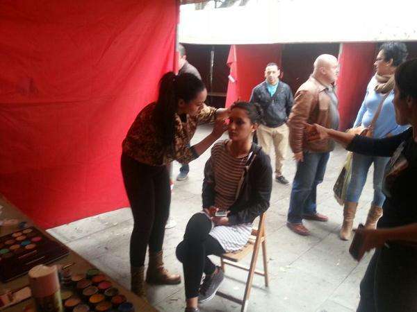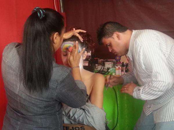 Una joven es maquillada, esta mañana en Los Llanos de Telde (Foto Antonio Alí)