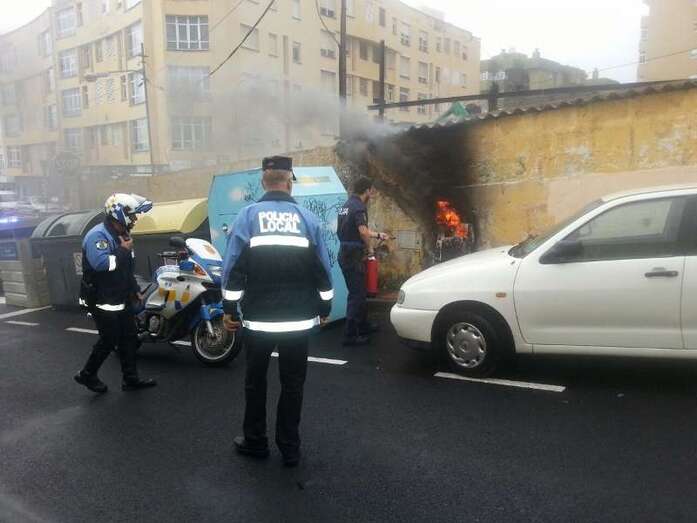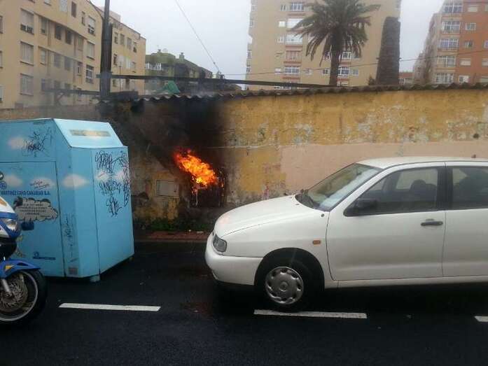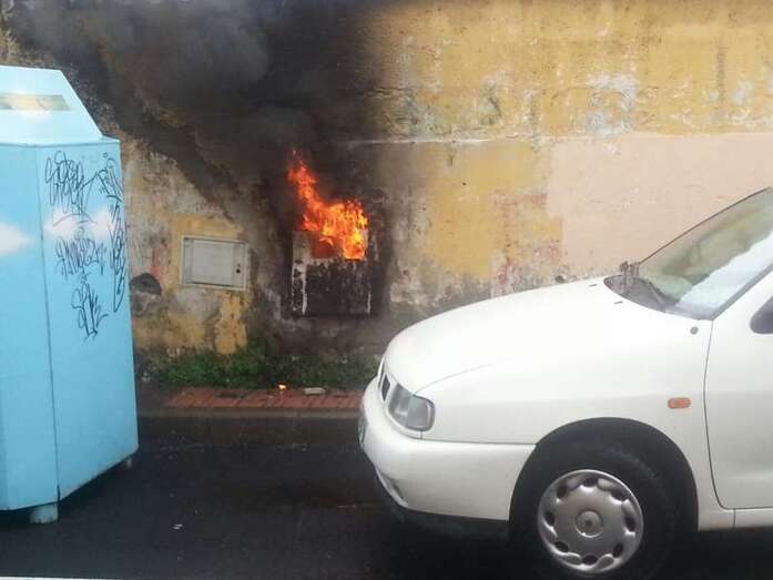 Agentes de la Policía Local de Telde y de la Nacional, además de los bomberos del Consorcio de Emergencia de Gran Canaria, sofocaron en la mañana de este lunes un incendio en una caja de luz en la zona de Picachos, en San Gregorio. La rápida actuación impidió que los vehículos y contenedores que estaban a escasos metros se vieran afectados. TA publica imágenes del suceso.