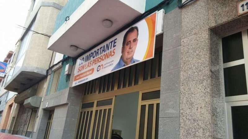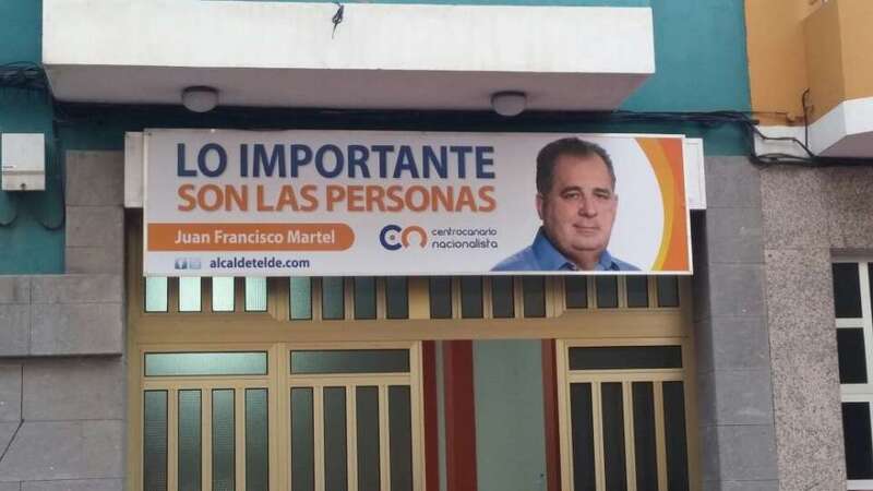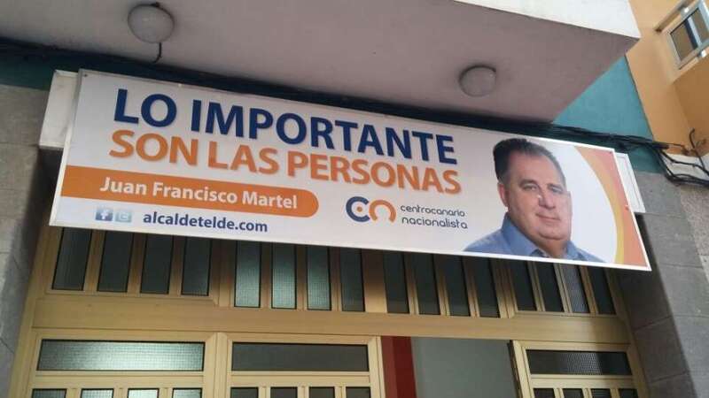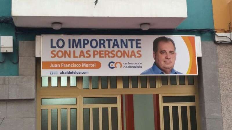 Un amplio cartel con la foto y el eslogan del nuevo candidato del CCN a la Alcaldía de Telde, Juan Martel Santana, luce desde ayer en la fachada del partido centrista ubicada en la calle de Doctor Federico Betancor Oliva. El lema de la campaña "Lo importante son las personas" y una foto de Martel resaltan en el nuevo cartel.
