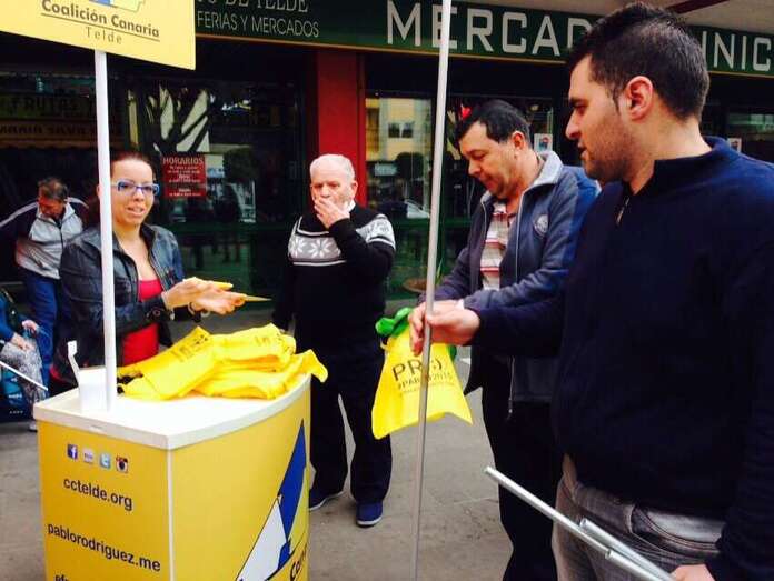 El equipo de precampaña de los nacionalistas de Coalición Canaria se fueron este sábado por la mañana al Mercado Municipal de Telde para divulgar entre los usuarios de este equipamiento su proyecto electoral para la ciudad de cara a los comicios de mayo próximo. CC montón un puesto informativo al que se acercaron numerosas personas. TA ofrece reportaje gráfico.