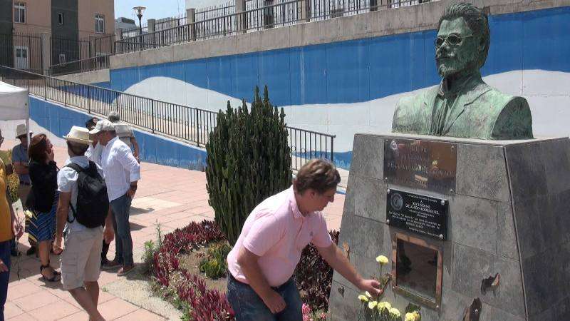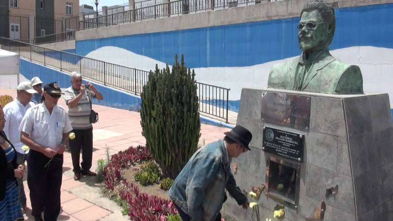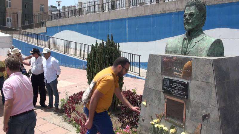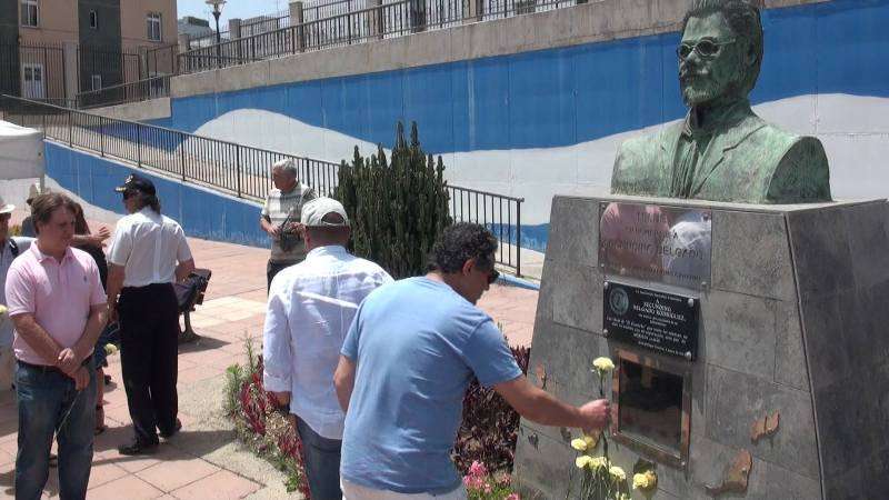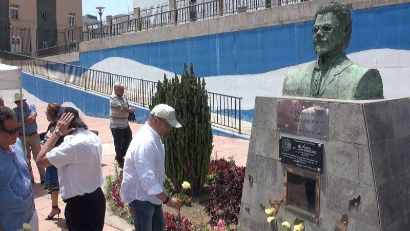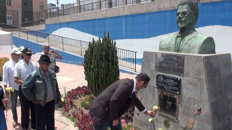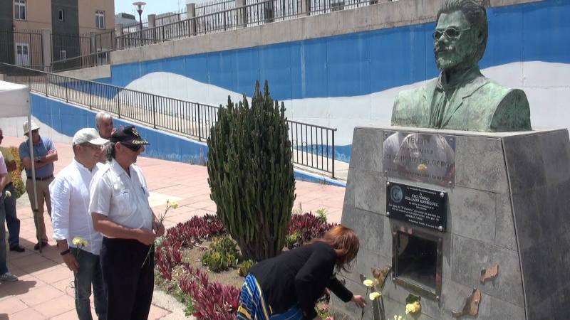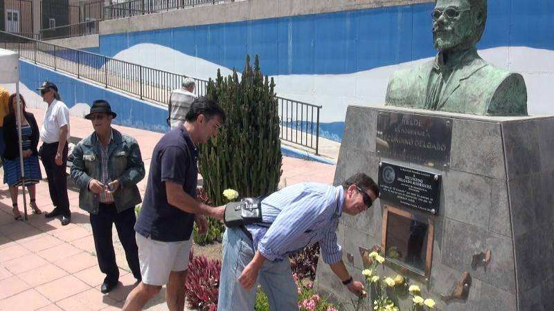 El parque urbano de La Barranquera, en Los Llanos de Telde, acogió este domingo al mediodía una ofrenda floral en el busto de Secundino Delgado. En el acto, en el que participaron representantes de diversas organizaciones y partidos políticos nacionalistas, se tributó un homenaje especial a José E. Guerra en el sesquicentenario de su nacimiento. TA ofrece reportaje gráfico.