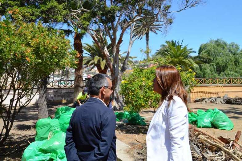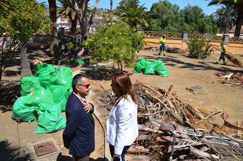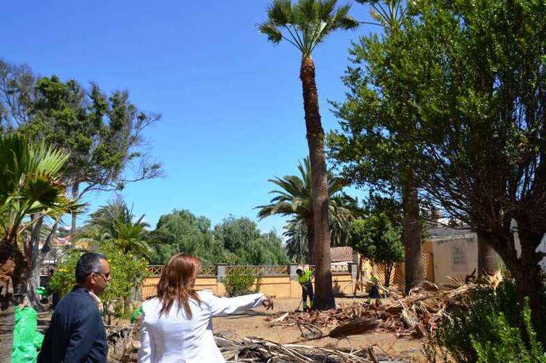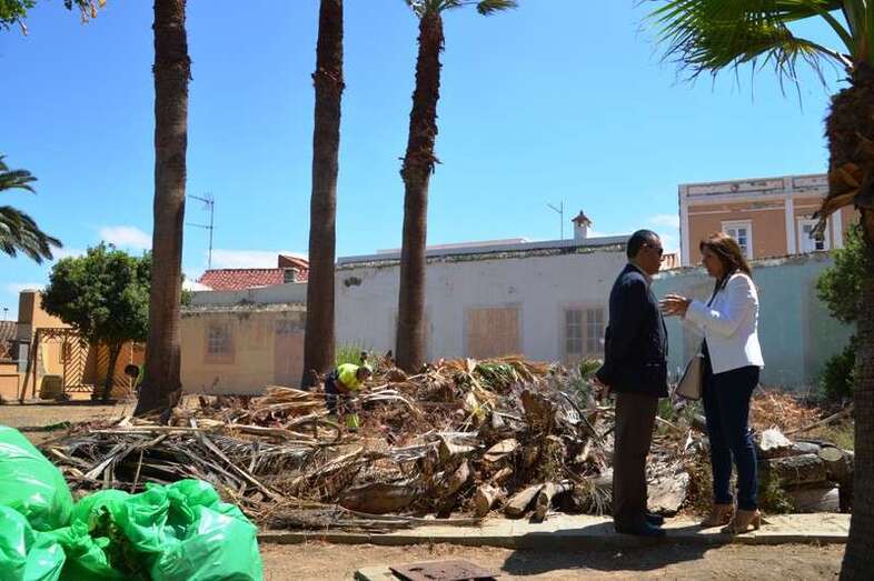 La alcaldesa de Telde, Carmen Hernández, supervisó este mediodía los trabajos de limpieza y acondicionamiento que operarios municipales acometen en el abandonado jardín de la histórica Casa Condal. El concejal de Parques y Jardines, Álvaro Monzón, explicó a la primera edila el proyecto para recuperar este espacio de corte romántico que ha perdido gran parte de su encanto por la desidia institucional. TA ofrece reportaje gráfico.