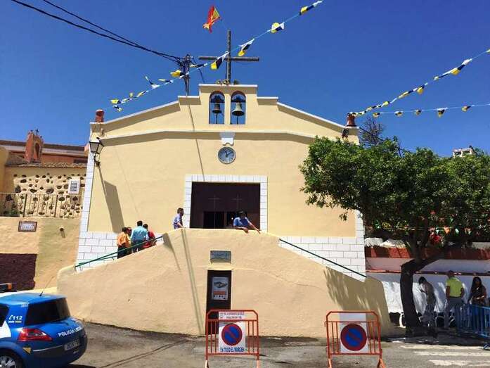 Los tronos de los patronos de La Breña, en la puerta del templo (Foto TA)