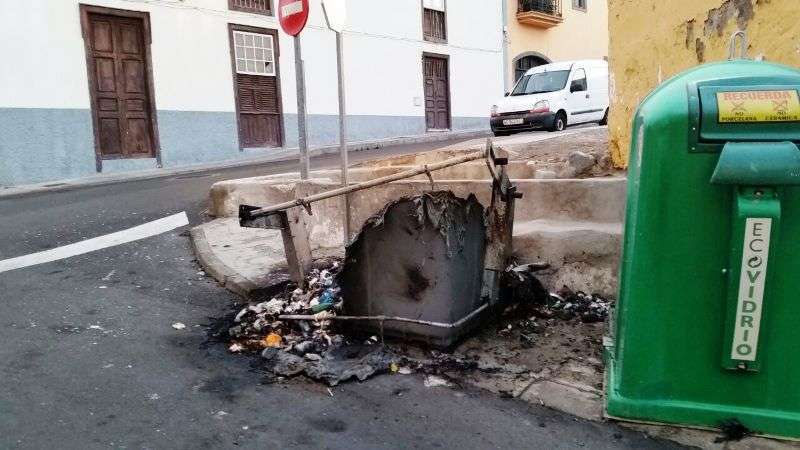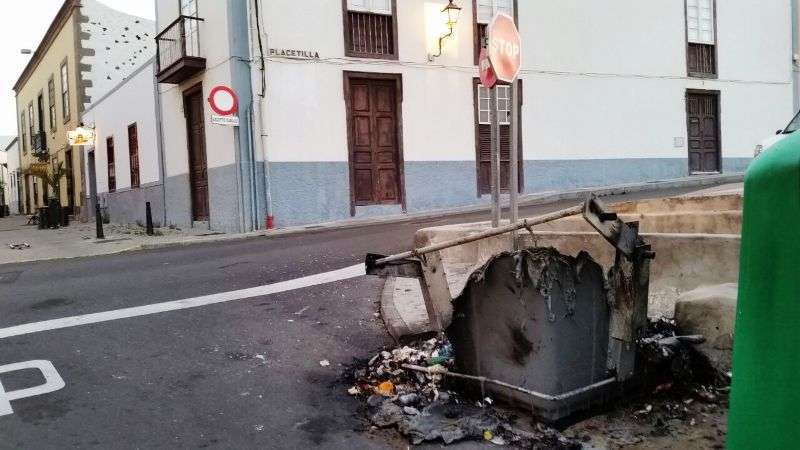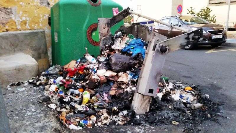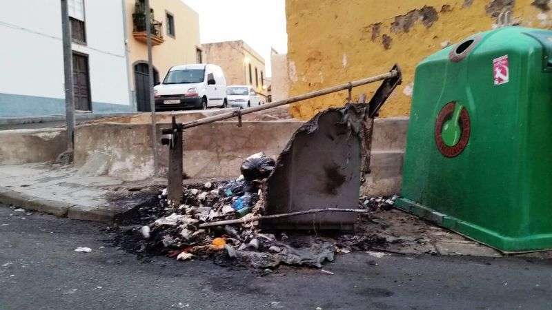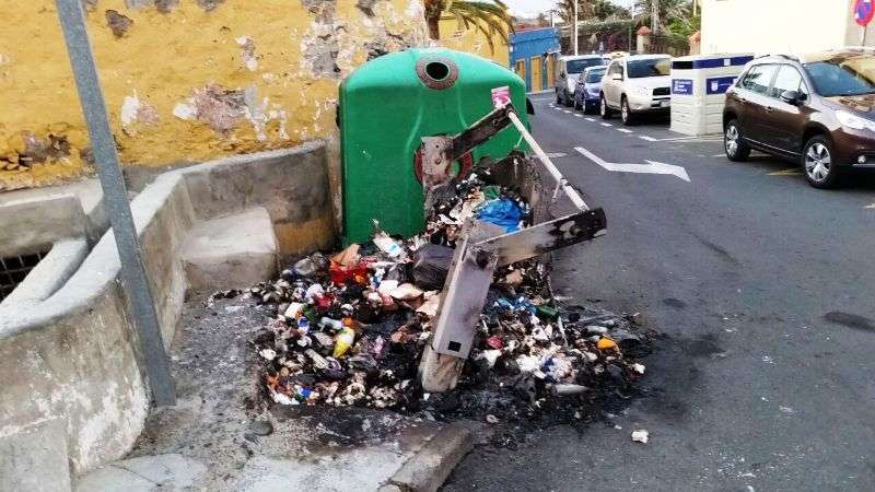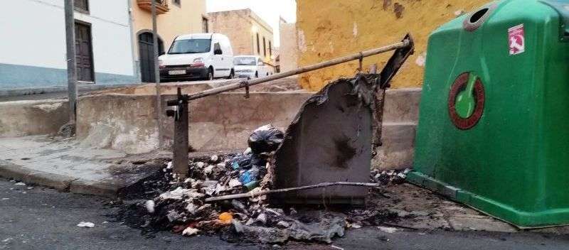 Continúan ardiendo contenedores en Telde. Este domingo le tocó a un recipiente de plástico para la recogida de residuos domésticos que estaba ubicado en la calle de Licenciado Calderín, junto a la acequia de La Placetilla. Los vecinos reclaman la urgente reposición del contenedor y la retirada de los restos de basura que contenía el depósito quemado. TA avanza imágenes.