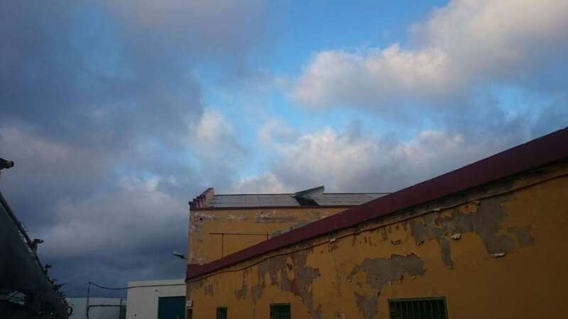 Las rachas de viento levantaron a primera hora de esta tarde-noche planchas metálicas de la cubierta de la nave municipal que alberga el material de la Concejalía de Festejos en el sector de El Caracol. Los bomberos tuvieron que intervenir para sujetar las láminas. TA ofrece imágenes.