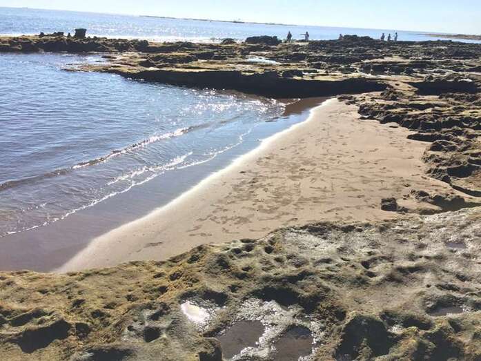 Las mareas vivas de estos días traen imágenes insólitas a la playa de Salinetas. Arena donde antes no había y rocas que emergen de la profundidad. Salinetas es "una playa dentro de una playa"