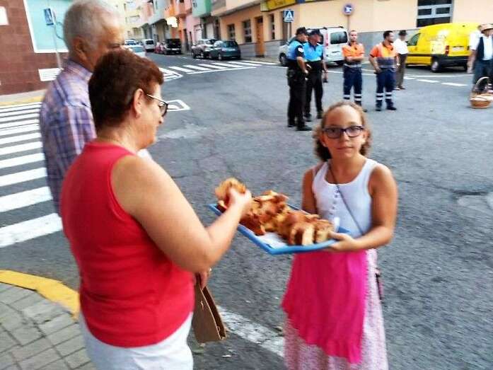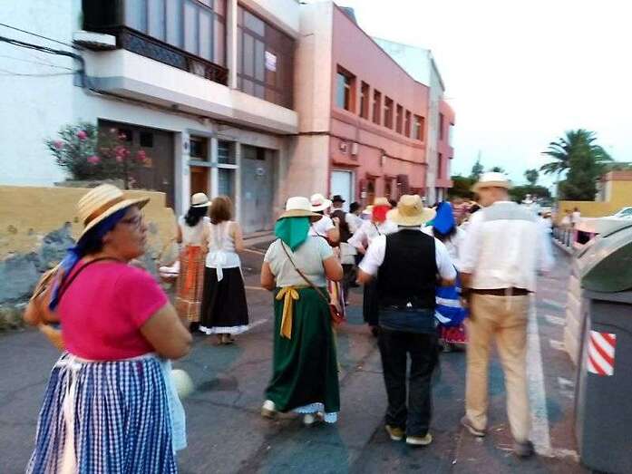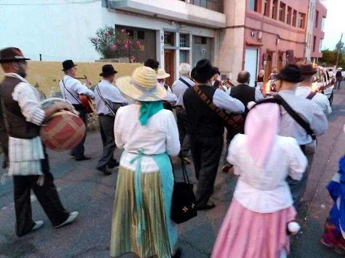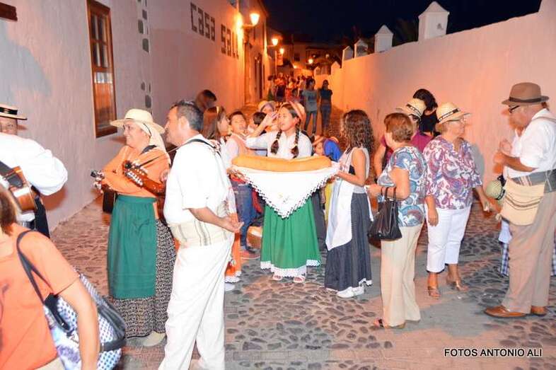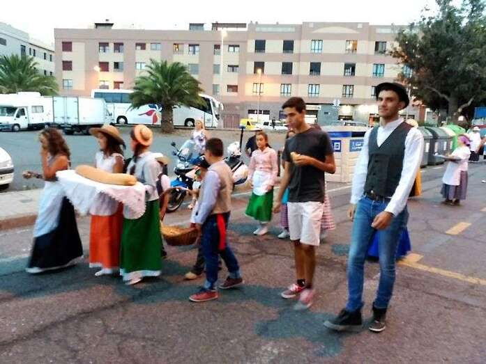 Los vecinos de San Francisco volvieron a celebrar este año la romería-ofrenda a su patrono después de varios años de suspensión. Decenas de personas de todas las edades, ataviadas con trajes típicos canarios, se echaron a la calle para darle vida a este desfile popular que arrancó en la calle de El Roque y finalizaría ante las puertas del templo conventual, donde tendría lugar la ofrenda. La romería estuvo animada por varias parrandas. Un baile de taifas puso el colofón al desfile. Los vecinos contaron con el acompañamiento del concejal de Festejos, Juan Martel. TA avanza imágenes de la romería.