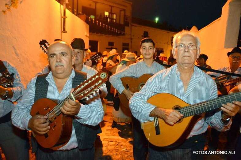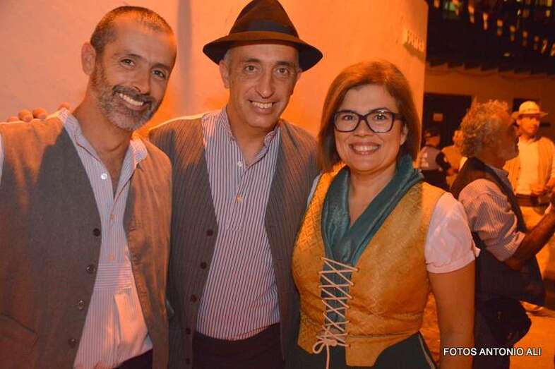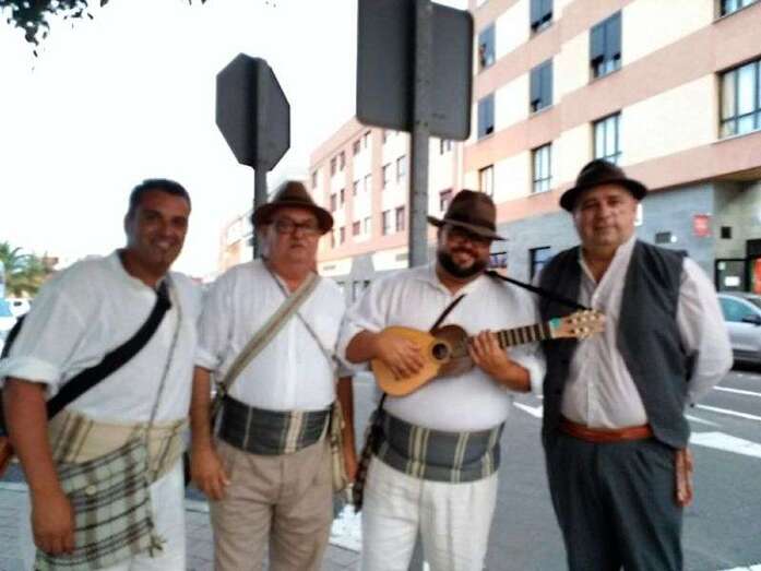 El concejal de Festejos, Juan Martel, con un grupo de vecinos, en el arranque de la romería (Foto TA)