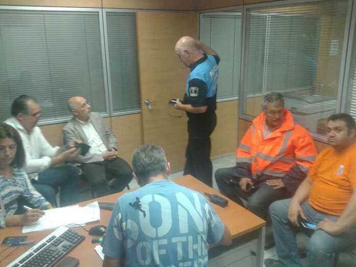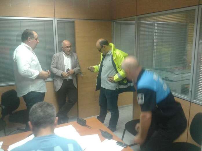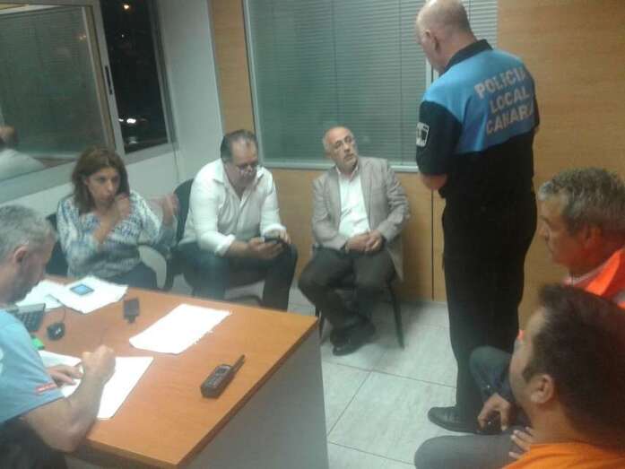 El presidente del Cabildo grancanario, Antonio Morales, y el consejero de Medioambiente, Emergencias y Participación Ciudadana, Juan Manuel Brito, se acercaron esta noche al Gabinete de Emergencias que el Ayuntamiento de Telde ha montado en la sede de la Policía Local en La Garita para coordinar las intervenciones de los diferentes efectivos (policías, bomberos, Protección Civil, etcétera) a raíz de la tromba de agua que anegó el municipio. Morales y Brito se reunieron con la alcaldesa y el concejal del área para tomar conocimiento de la situación de la ciudad. TA avanza imágenes de la reunión.