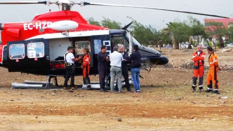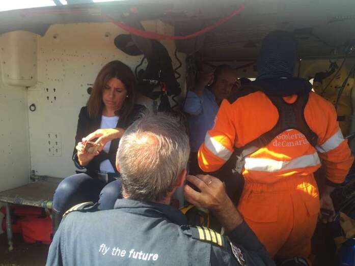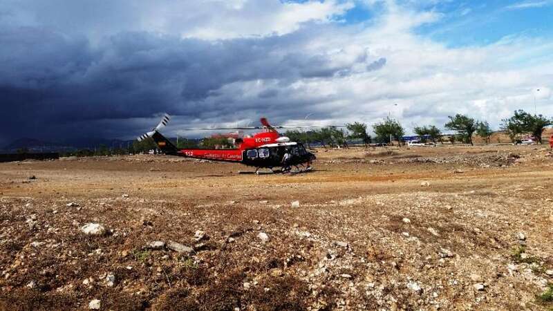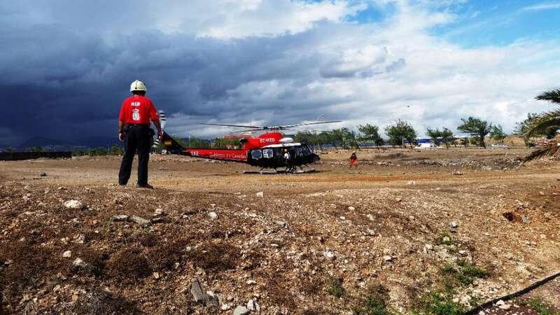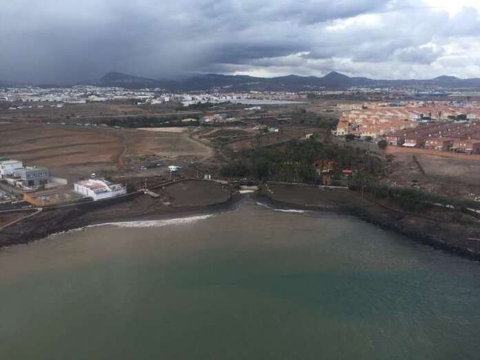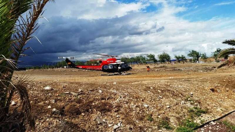 El helicóptero Alfa-Hotel 31 del Grupo de Emergencias y Salvamento (GES) del Gobierno de Canarias ha sobrevolado esta mañana el municipio de Telde para evaluar los daños causados por las lluvias torrenciales que ayer anegaron la ciudad. El aparato realizó dos vuelos con autoridades. En el primero, viajaba la alcaldesa Carmen Hernández con los consejeros de Política Territorial, Nieves Lady Barreto, y el de Economía, Industria, Energía y Conocimiento, Pedro Ortega. En el segundo lo hicieron el diputado regional y concejal teldense Pablo Rodríguez y el director general de Seguridad y Emergencias, Juan Francisco Padrón. Ambas pasadas se centraron especialmente en la zona de costa. El helicóptero aterrizó en una explanada próxima a la rotonda del Drago de La Garita.