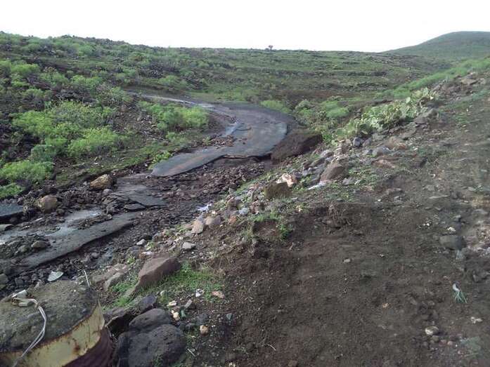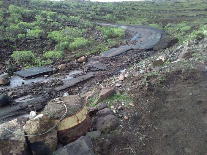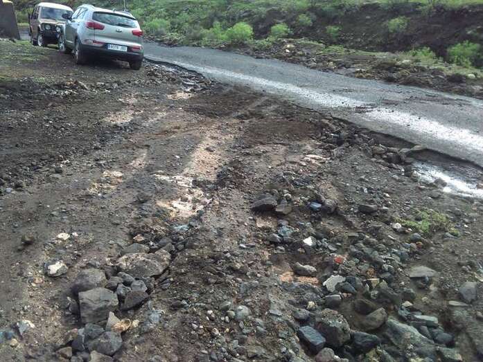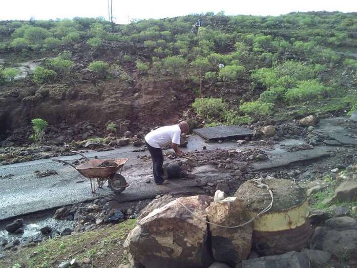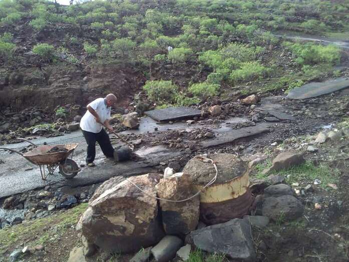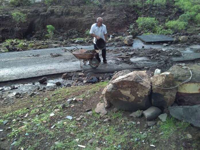 El presidente de la asociación de vecinos de Rosiana, José Luis Florido, intentando despejar esta mañana la carretera (Foto TA)