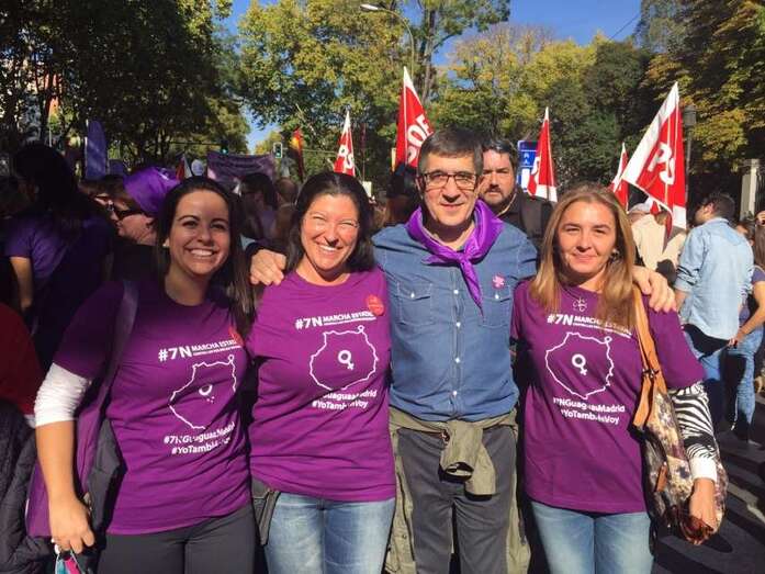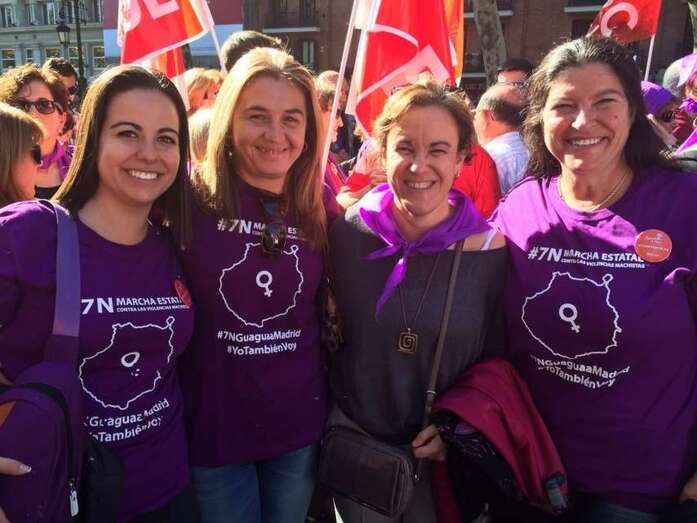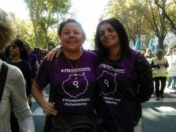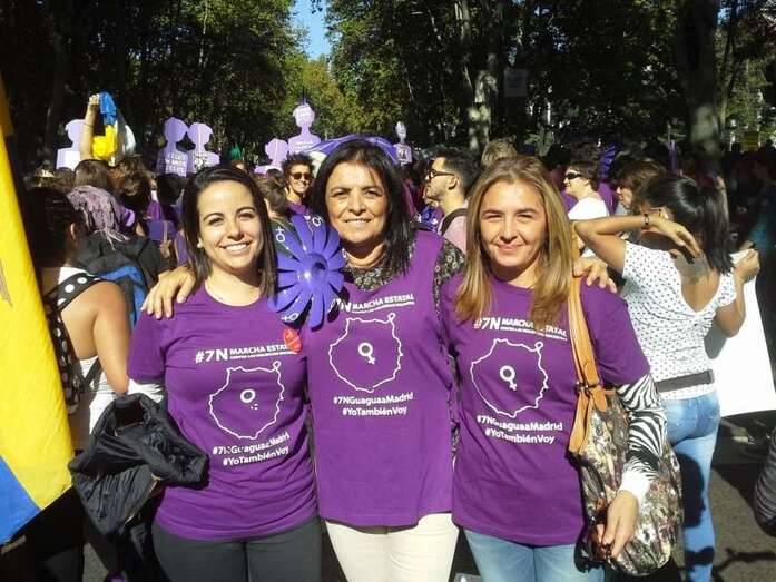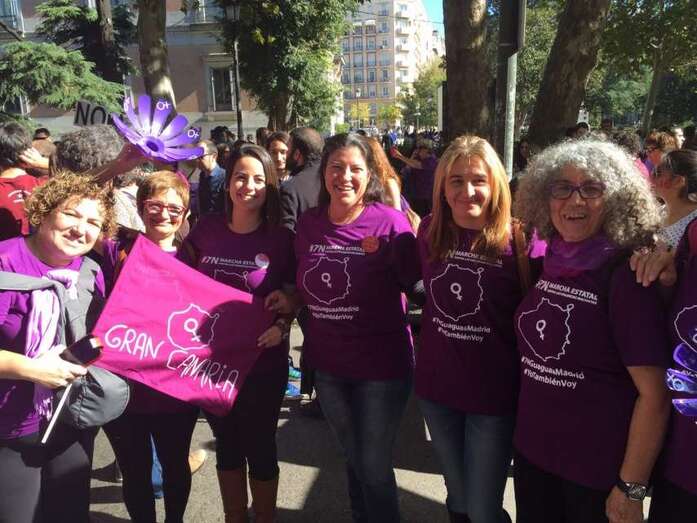 Sindicalistas, políticas y representantes de colectivos de mujeres han participado este sábado en la I Marcha Estatal contra las Violencias Machistas que recorrió las calles de Madrid a partir de las 12.00 horas con la asistencia de miles de personas de toda España. Las concejalas socialistas del Gobierno de Telde, Saraiba Leal y Soledad Hernández, y la conocida sindicalista de UGT, Cecilia Guerra, participaron en la protesta pacífica. TA avanza imágenes.