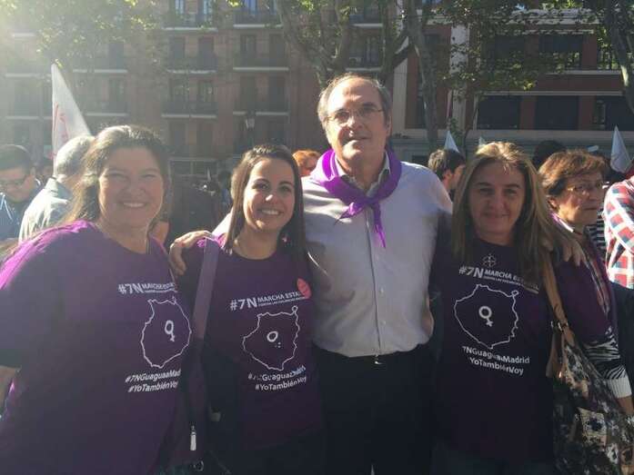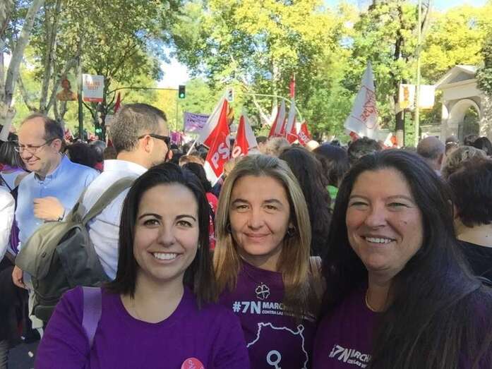 Las concejalas socialista Saraiba Leal y Soledad Hernández con la sindicalista Cecilia Guerra, hoy en la marcha pacífica en Madrid (Foto TA)