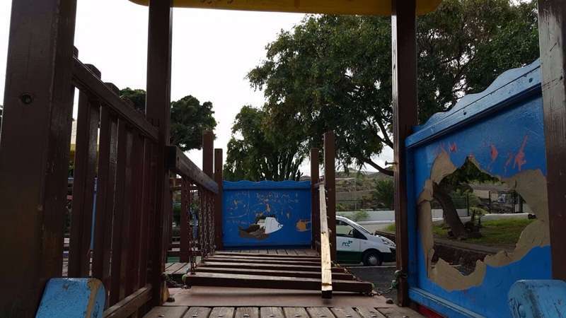 De esta guisa han quedado los juegos infantiles que el Ayuntamiento de Telde reparó hace apenas un par de semanas en la urbanización Eucaliptos II del Valle de Jinámar. Fuentes municipales aseguran sentirse “cansadas” con estos actos vandálicos, que no hacen otra cosa más que privar de un espacio y de ocio a los más pequeños del barrio y, de paso, sangrar aún más las maltrechas arcas locales.