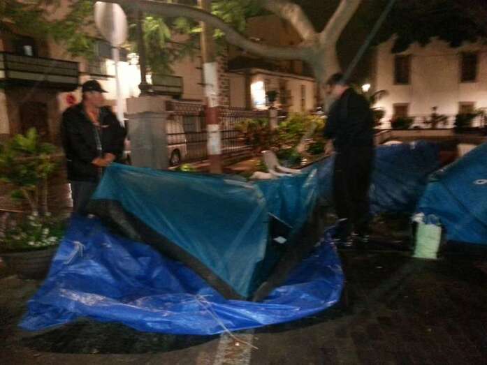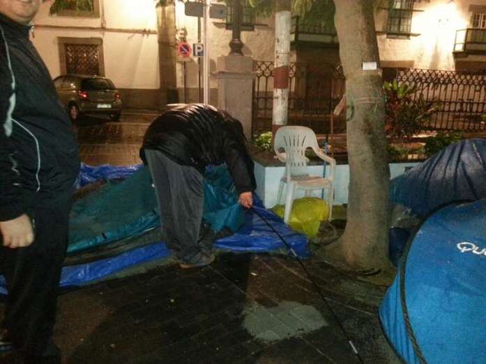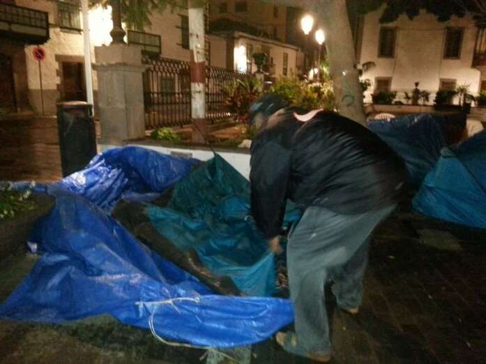 Santiago León, que lleva 40 días acampados en la plaza de San Juan, la mayoría de ellos en huelga de hambre, ha iniciado hace unos minutos el desmontaje de su caseta y pertenencias al recibir una propuesta laboral que afirma que “tiene que negociar”. Según fuentes del entorno del huelguista, León abandona de momento la acampada, mientras que su compañero de fatiga, José Antonio Brito, se mantiene firme en la protesta por un trabajo digno en el recinto público del casco viejo. La marcha de León se produce en la jornada en que ambos habían anunciado la venta de un almanaque solidario para recaudar dinero para continuar con la lucha emprendida.