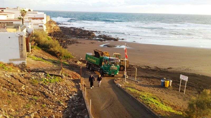La Demarcación de Costas en Canarias inició este martes el trasvase de arena entre las playas del Hombre y Hoya de Pozo para reparar el perfil de esta cala que quedó muy dañado con las barranqueras provocadas por las lluvias torrenciales de la penúltima semana de octubre. El área que dirige el edil Álvaro Monzón solicitó esta intervención para reparar los graves efectos del temporal. TA avanza imágenes.