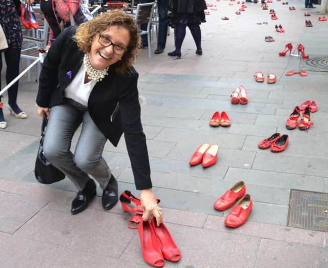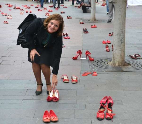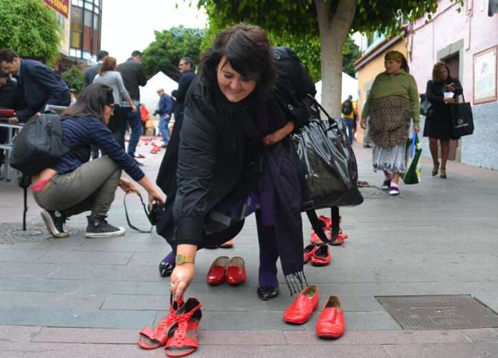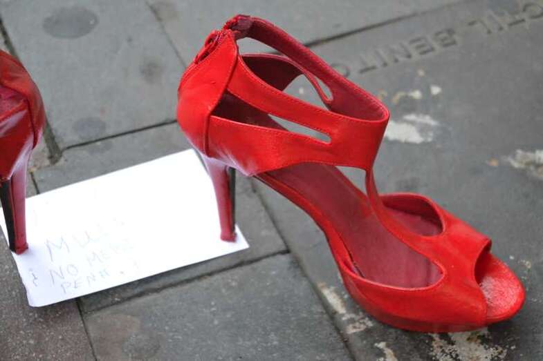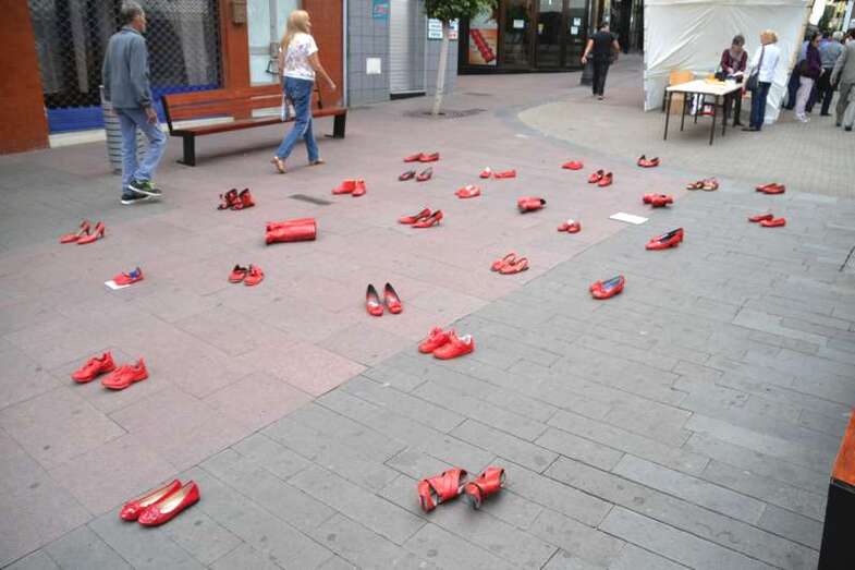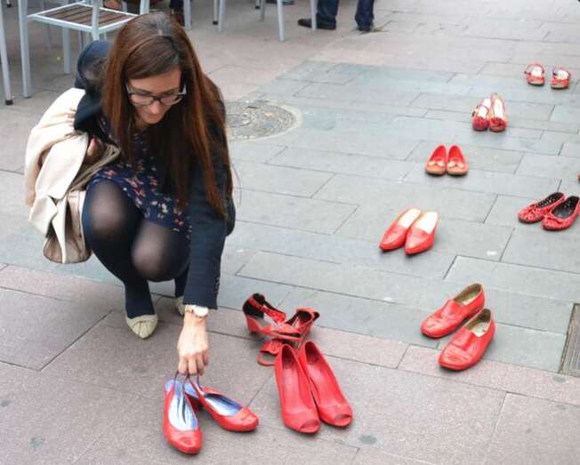 Tacones rojos y poesía en recuerdo de las mujeres asesinadas por hombres