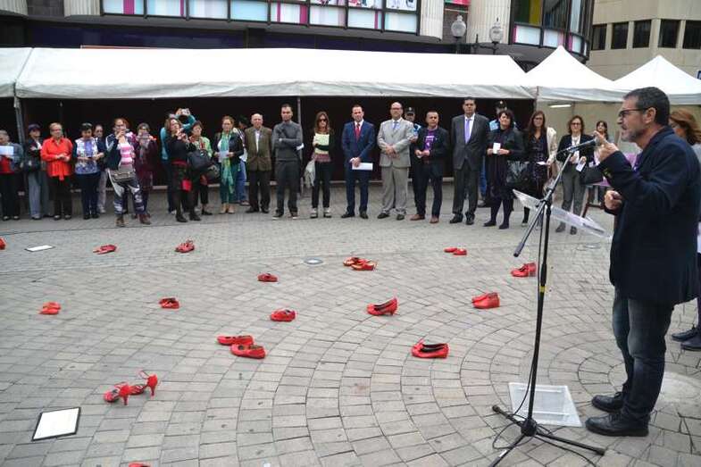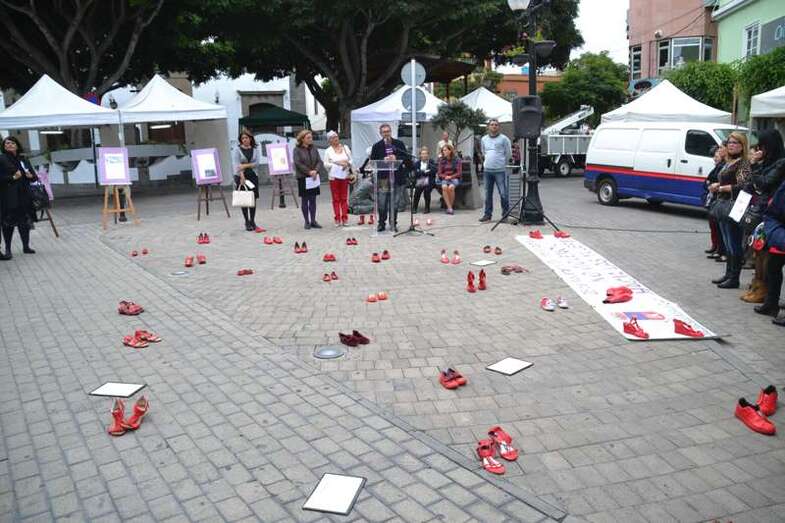 Zapatos teñidos de rojo y emotivos versos. Así quiso Telde rendir homenaje este viernes a todas las féminas asesinadas como consecuencia de la violencia de género. El entorno de la plaza de Los Llanos acogió una performance con motivo del Día Internacional de la No Violencia hacia las Mujeres y una lectura de un manifiesto. Un acto organizado desde el área de Igualdad, en el que participaron colectivos, políticos y ciudadanos y en el que se aprovechó para dedicar una poesía a una de las víctimas de esta lacra social que desgraciadamente perdió la vida hace años en el municipio. TA ofrece imágenes del acto.