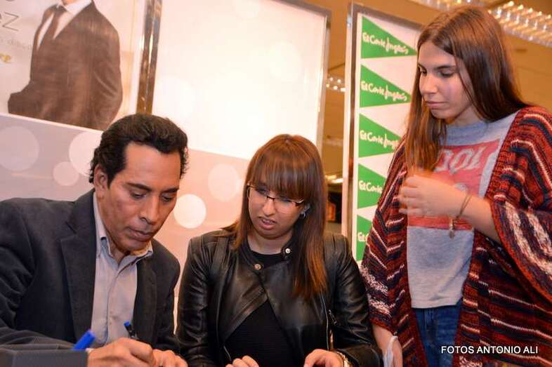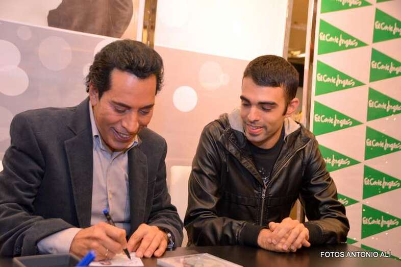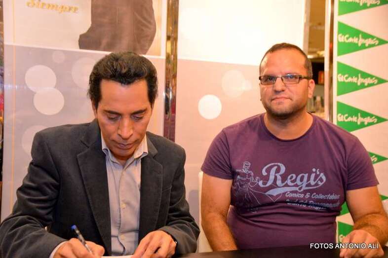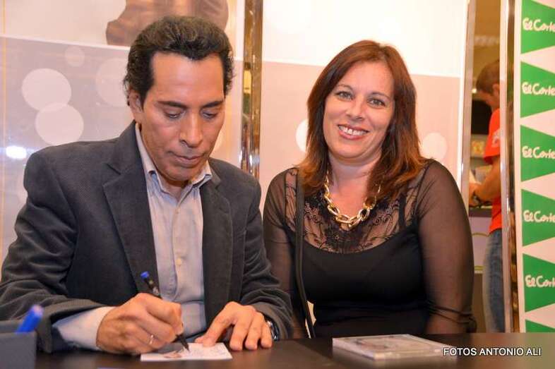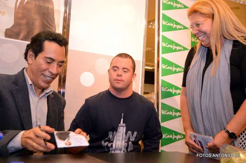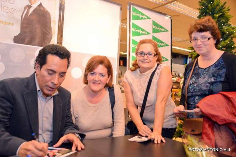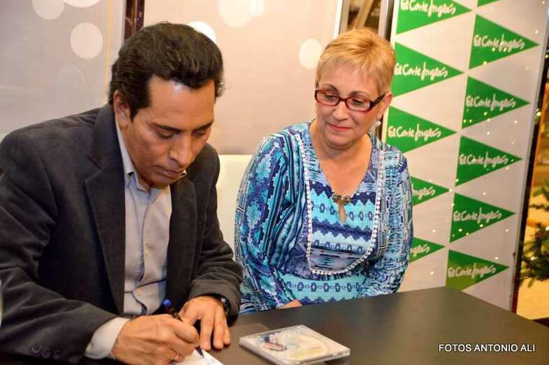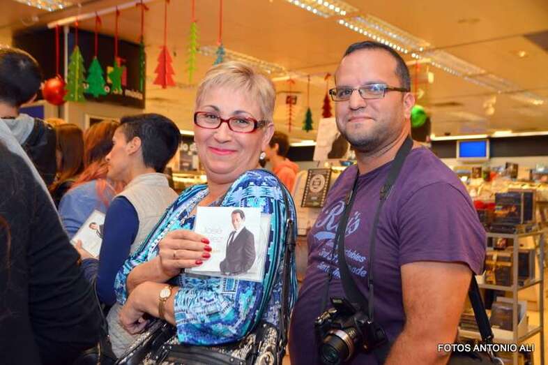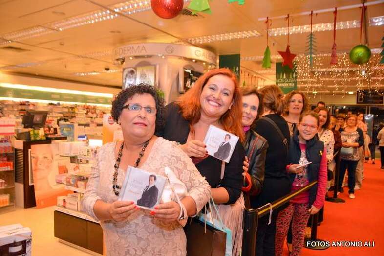 José Vélez y Papá Noel, esta tarde durante la firma de discos en la capital grancanaria (Foto Antonio Alí)