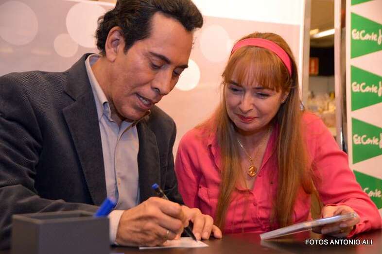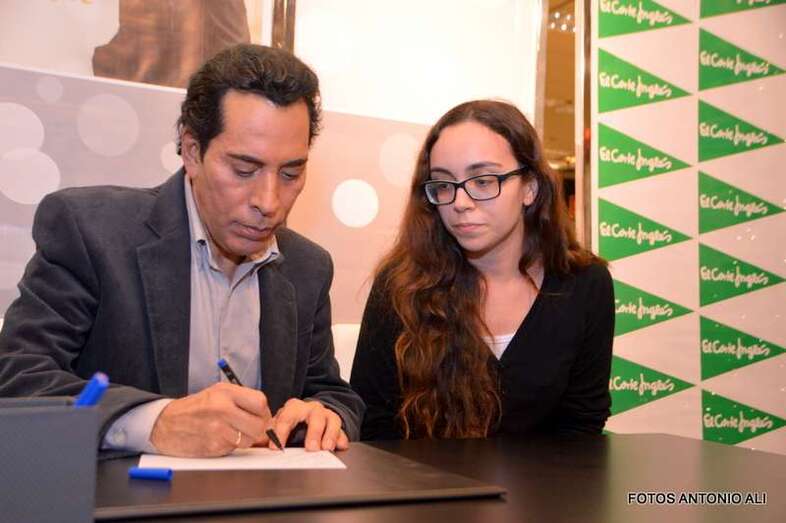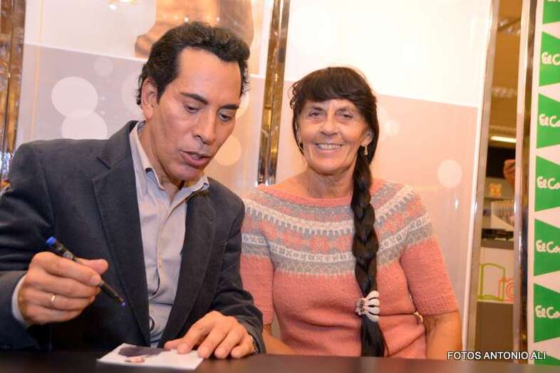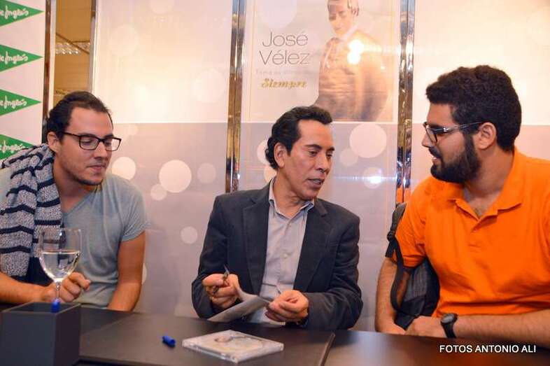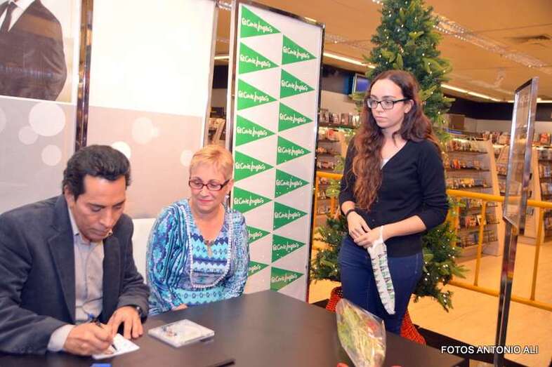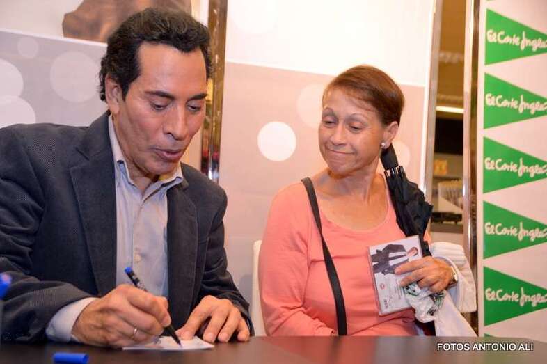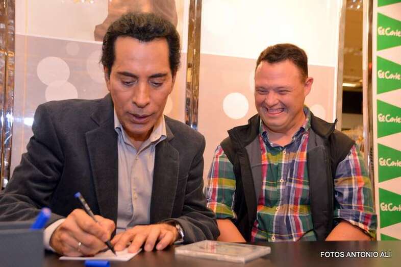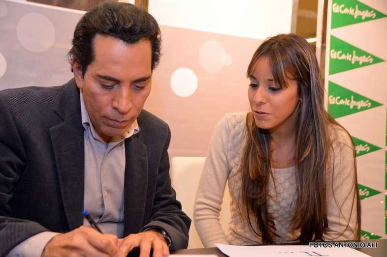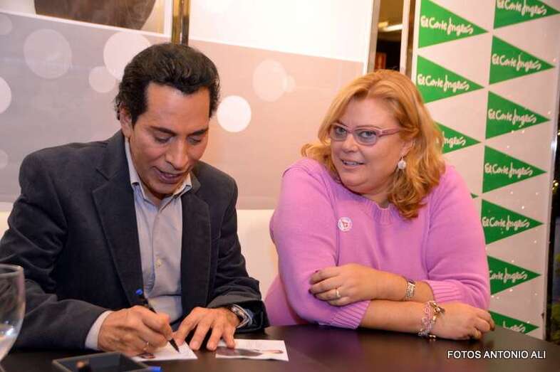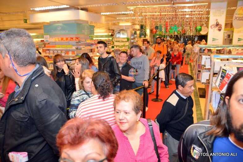 José Vélez y Papá Noel, esta tarde durante la firma de discos en la capital grancanaria (Foto Antonio Alí)
